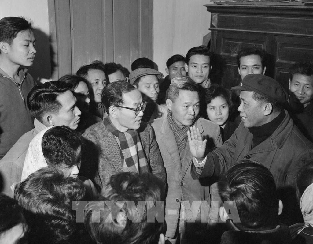 Bí thư thứ nhất Ban chấp hành Trung ương Đảng Lê Duẩn đến thăm Việt Nam Thông tấn xã, ngày 14/2/1967. Ảnh: TTXVN
