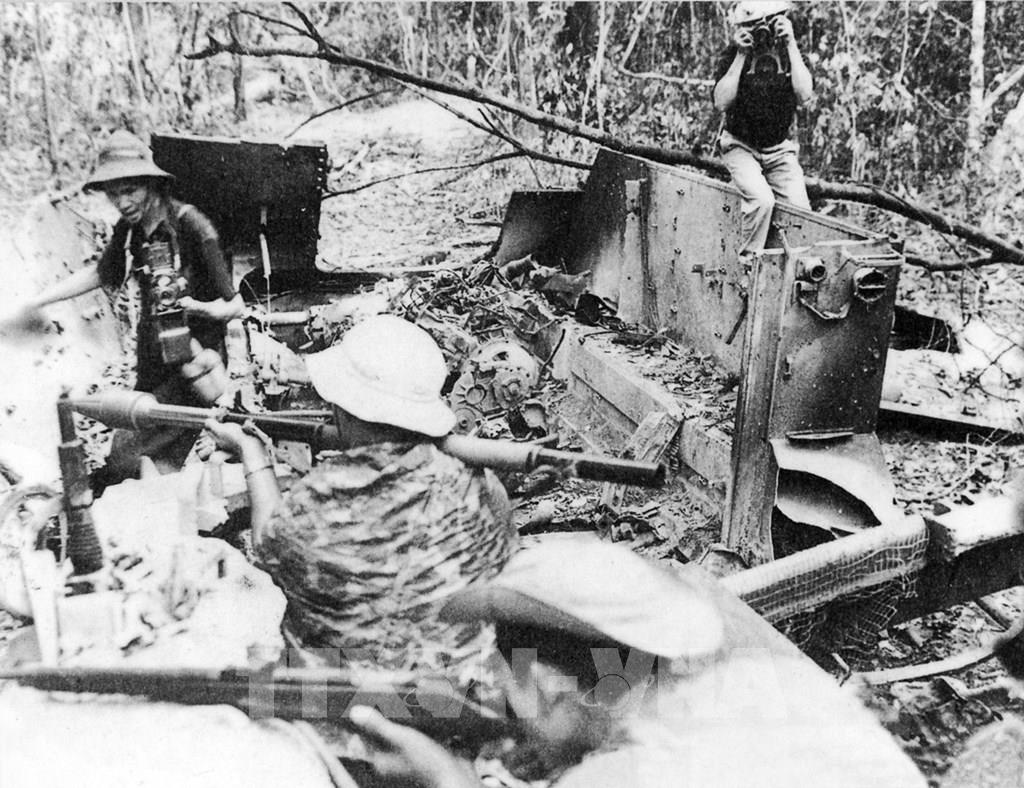 Trong công cuộc kháng chiến cứu quốc, đội ngũ đông đảo những người làm báo của TTXVN đã thực sự là những nhà báo – chiến sĩ. Trong ảnh: Phóng viên Thông tấn xã Giải phóng (nay là TTXVN) trong trận chống càn Junction City (1967). Ảnh: Tư liệu TTXVN