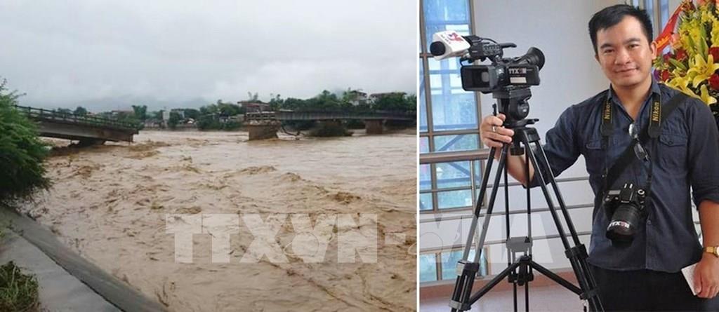 Nhiều tấm gương nhà báo đã hy sinh hoặc bị hành hung, gây thương tích trong khi làm nhiệm vụ ngay trong thời bình, trong đó có nhà báo Đinh Hữu Dư của Thông tấn xã Việt Nam, hy sinh khi tác nghiệp đưa tin về tình hình bão lũ tại Yên Bái. Trong ảnh: Nhà báo Đinh Hữu Dư của TTXVN (phải) và hiện trường nơi anh bị rơi xuống dòng nước lũ do cầu gãy trong khi tác nghiệp. Ảnh: TTXVN