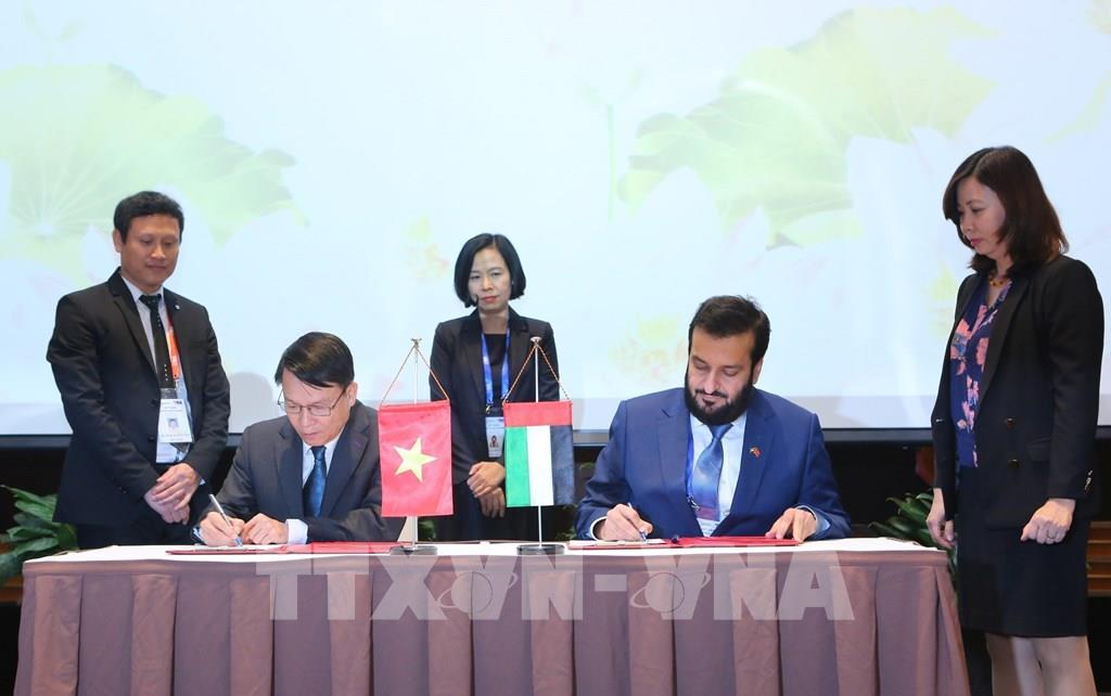 TTXVN hiện có quan hệ hợp tác song phương và đa phương với hơn 40 hãng thông tấn và tổ chức báo chí quốc tế lớn trên thế giới và là Ủy viên Ban chấp hành Tổ chức các hãng thông tấn Châu Á-Thái Bình Dương (OANA). Trong ảnh: Tổng giám đốc TTXVN Nguyễn Đức Lợi và Giám đốc điều hành Hãng thông tấn Nhà nước WAM của Các Tiểu vương quốc Arab thống nhất (UAE) Mohamed Jalal Al Rayssi ký Bản ghi nhớ thiết lập quan hệ hợp tác nghiệp vụ giữa TTXVN và WAM, chiều 19/4/2019, tại Hà Nội. Ảnh: TTXVN