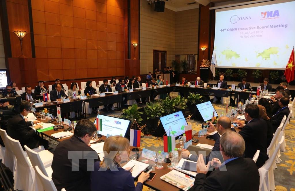 TTXVN hiện có quan hệ hợp tác song phương và đa phương với hơn 40 hãng thông tấn và tổ chức báo chí quốc tế lớn trên thế giới và là Ủy viên Ban chấp hành Tổ chức các hãng thông tấn Châu Á-Thái Bình Dương (OANA). Trong ảnh: Phiên thảo luận về thách thức và các giải pháp nâng cao hiệu quả đối với các hãng thông tấn trong kỷ nguyên số, tại Hội nghị Ban chấp hành OANA lần thứ 44 khai mạc sáng 19/4 tại Hà Nội, do TTXVN đăng cai. Ảnh: Lâm Khánh - TTXVN