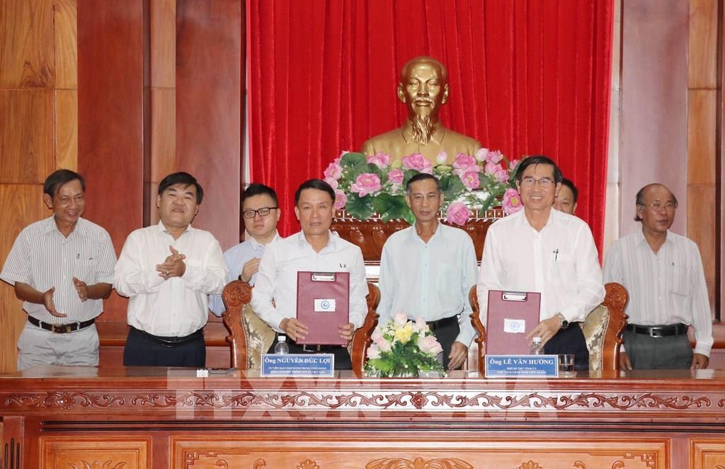 Tổng Giám đốc Nguyễn Đức Lợi và lãnh đạo tỉnh Tiền Giang ký kết Thỏa thuận hợp tác thông tin giữa TTXVN và UBND tỉnh Tiền Giang, chiều 15/7/2019, tại thành phố Mỹ Tho. Ảnh: Nam Thái - TTXVN