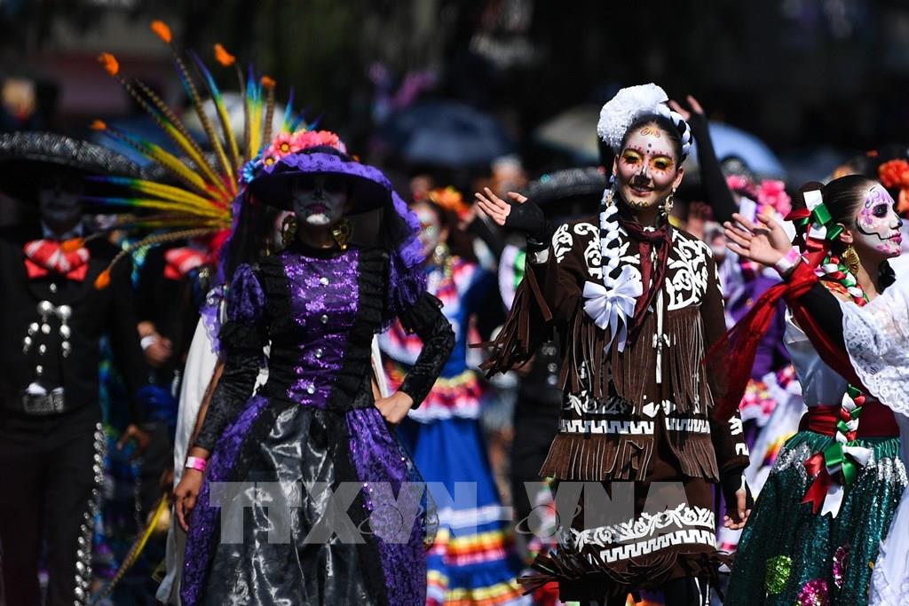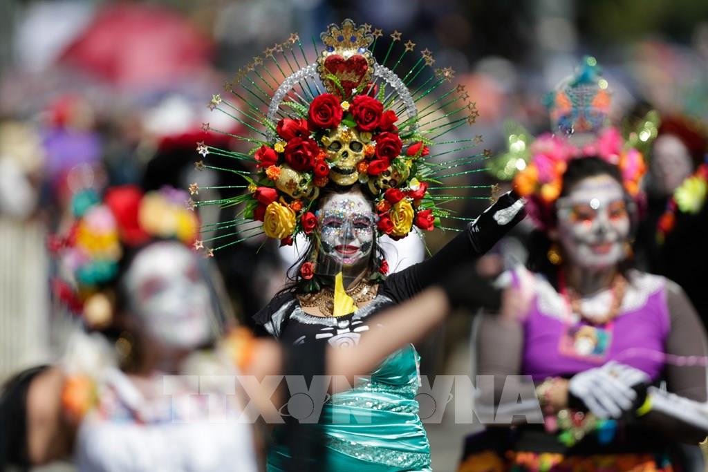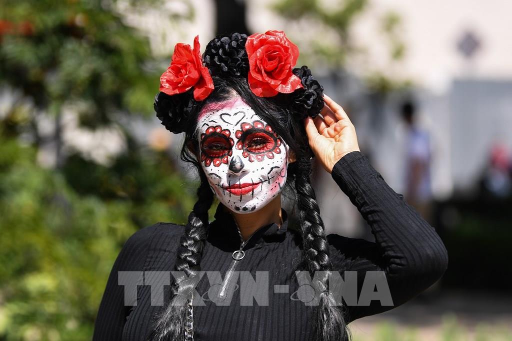 Người dân trong trang phục hóa trang độc đáo tham gia lễ hội "Ngày của người chết" tại Mexico City, Mexico, ngày 31/10/2021. Ảnh: THX/ TTXVN