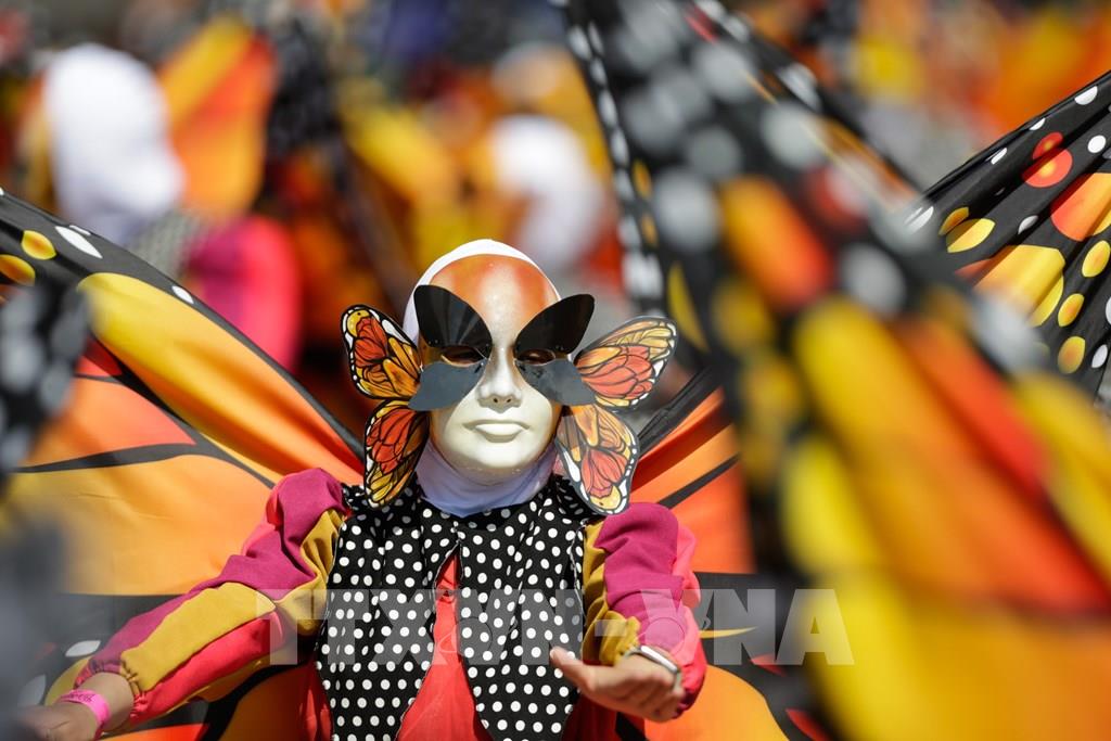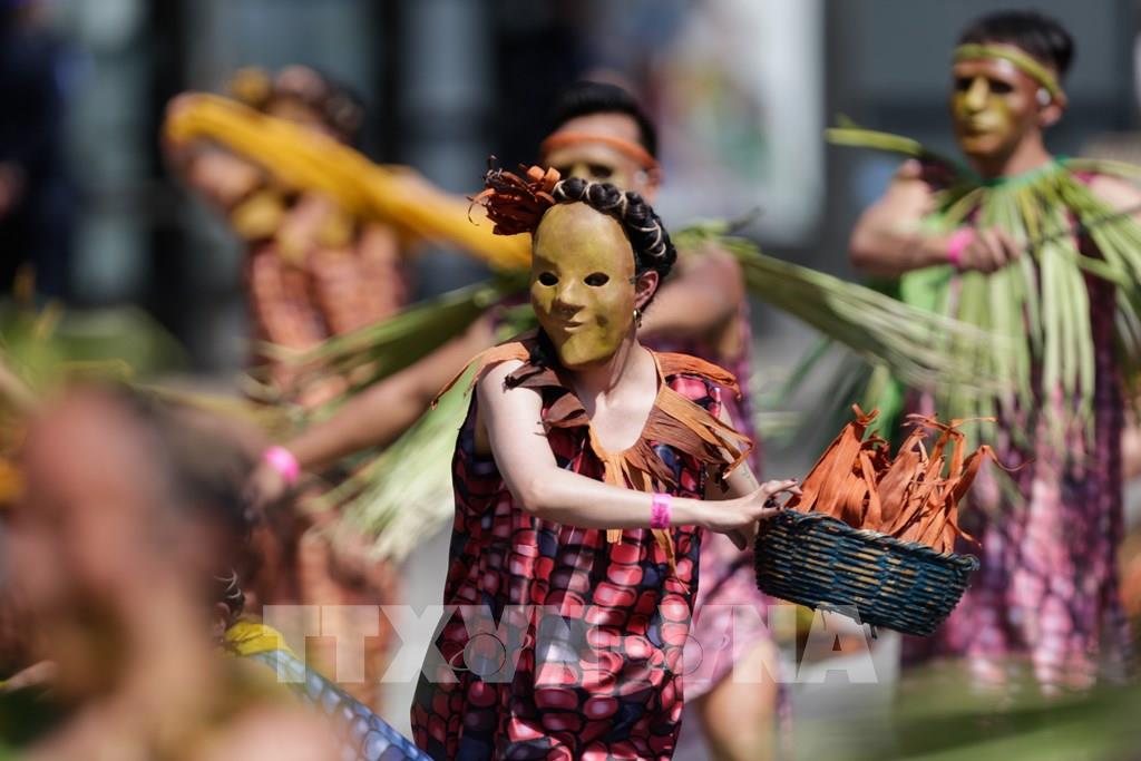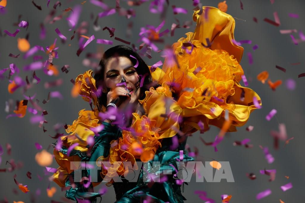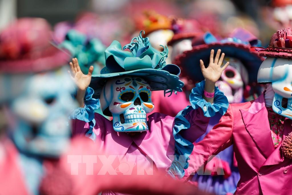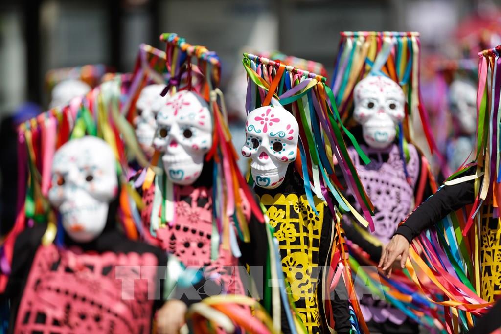 Nghệ sĩ biểu diễn tại lễ hội "Ngày của người chết" ở Mexico City, Mexico, ngày 31/10/2021. Ảnh: THX/ TTXVN