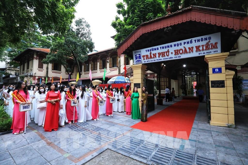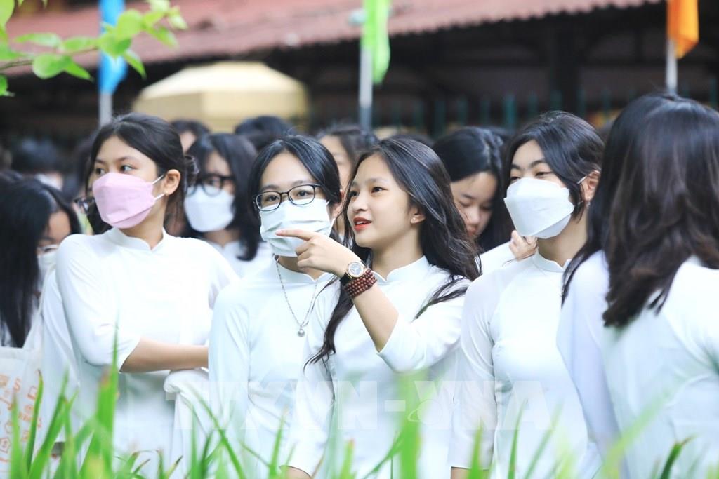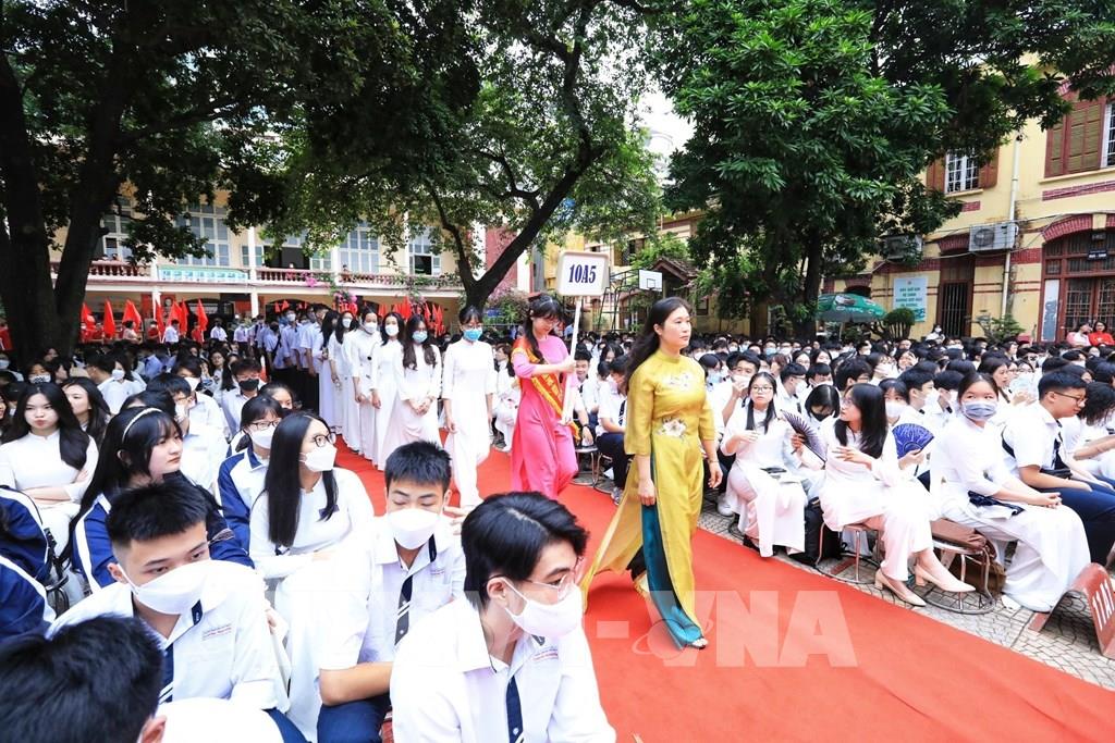 Những học sinh lớp 10 trường PTTH Trần Phú trong ngày khai giảng năm học mới. Ảnh: Tuấn Anh - TTXVN