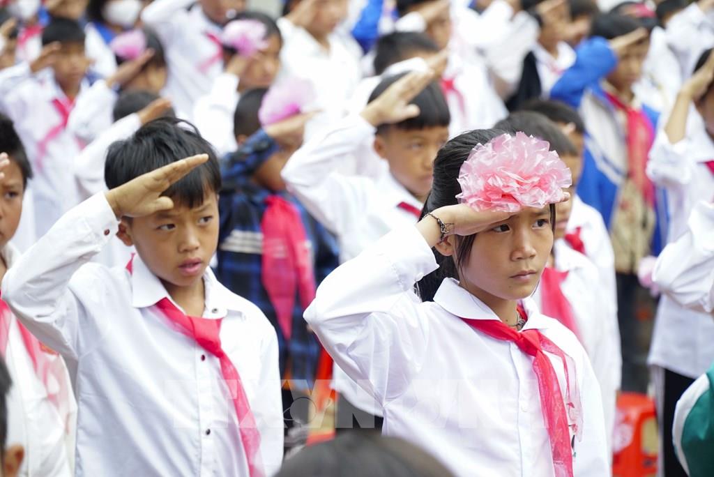 Học sinh trường Phổ thông Dân tộc bán trú – THCS Pu Nhi, huyện Điện Biên Đông, tỉnh Điện Biên tại lễ khai giảng năm học mới. Ảnh: Xuân Tư - TTXVN