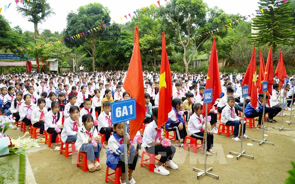 Lễ khai giảng năm học mới tại trường Phổ thông Dân tộc bán trú – THCS Pu Nhi, huyện Điện Biên Đông, tỉnh Điện Biên. Ảnh: Xuân Tư - TTXVN