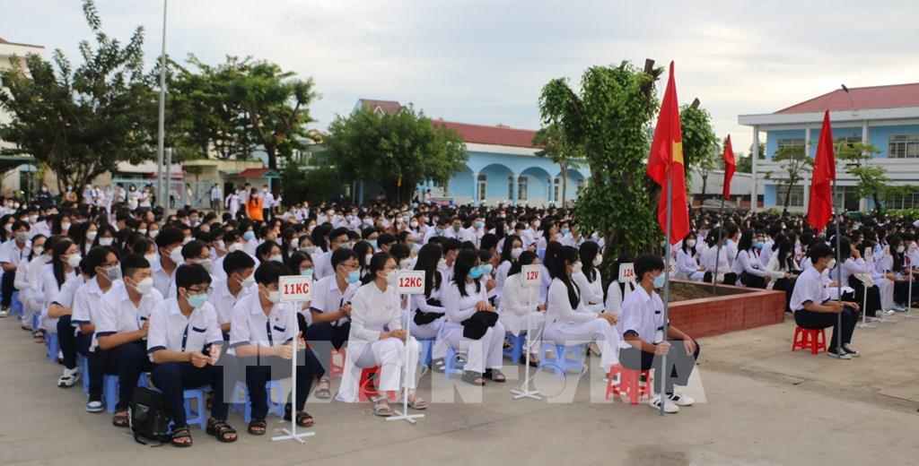 Học sinh trường Trung học phổ thông Chuyên Bạc Liêu dự lễ khai giảng năm học 2022 - 2023. Ảnh: Tuấn Kiệt – TTXVN