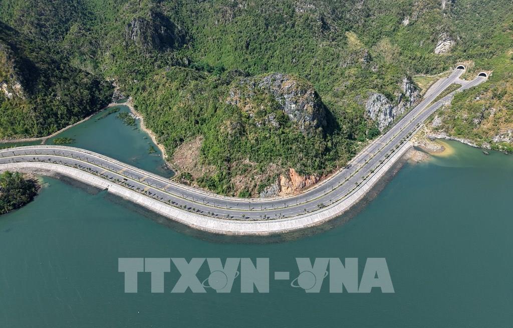 Tuyến đường ven biển xuyên qua các dãy núi đá vôi là điểm nhấn về kiến trúc, cảnh quan, là điểm tham quan cho du khách đến ngắm cảnh, trải nghiệm. Ảnh: Quốc Khánh – TTXVN