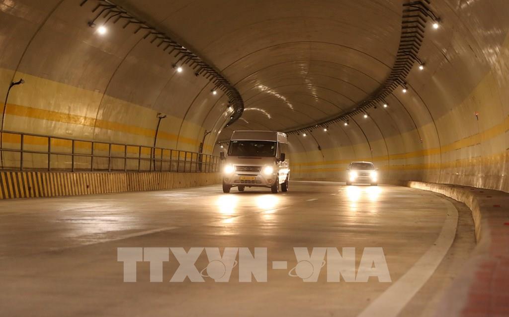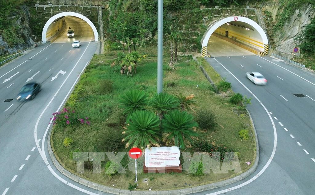 Điểm nhấn của công trình là hai ống hầm xuyên núi, dài 235m, gồm 3 làn xe. Đây là hầm đường bộ dài nhất tỉnh Quảng Ninh. Ảnh: Quốc Khánh – TTXVN