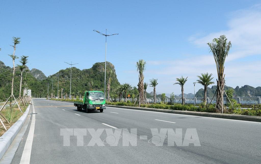 Hai bên đường và dải phân cách được trồng cây, lắp hệ thống đèn chiếu sáng hiện đại, tạo cảnh quan tuyệt đẹp khi đi trên tuyến đường du lịch này. Ảnh: Quốc Khánh - TTXVN