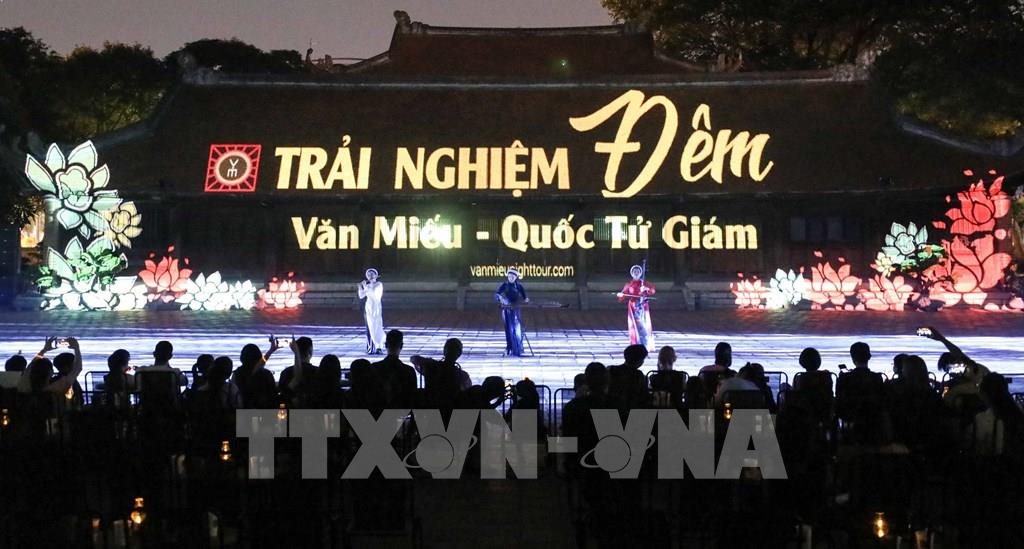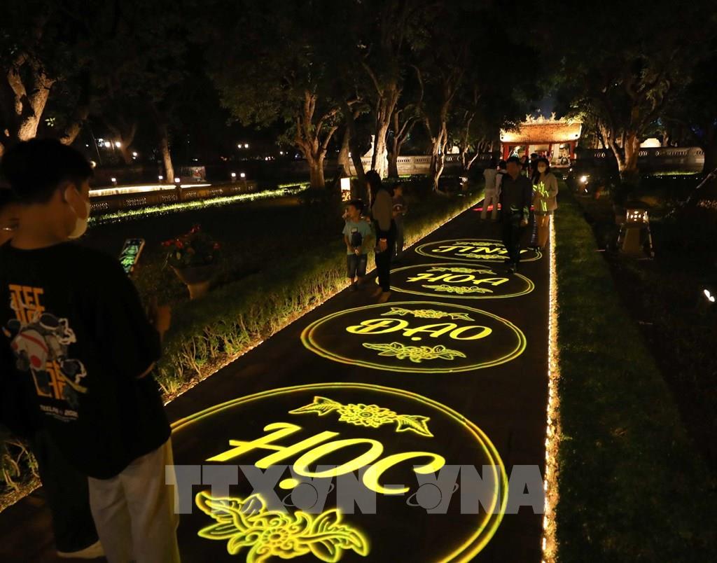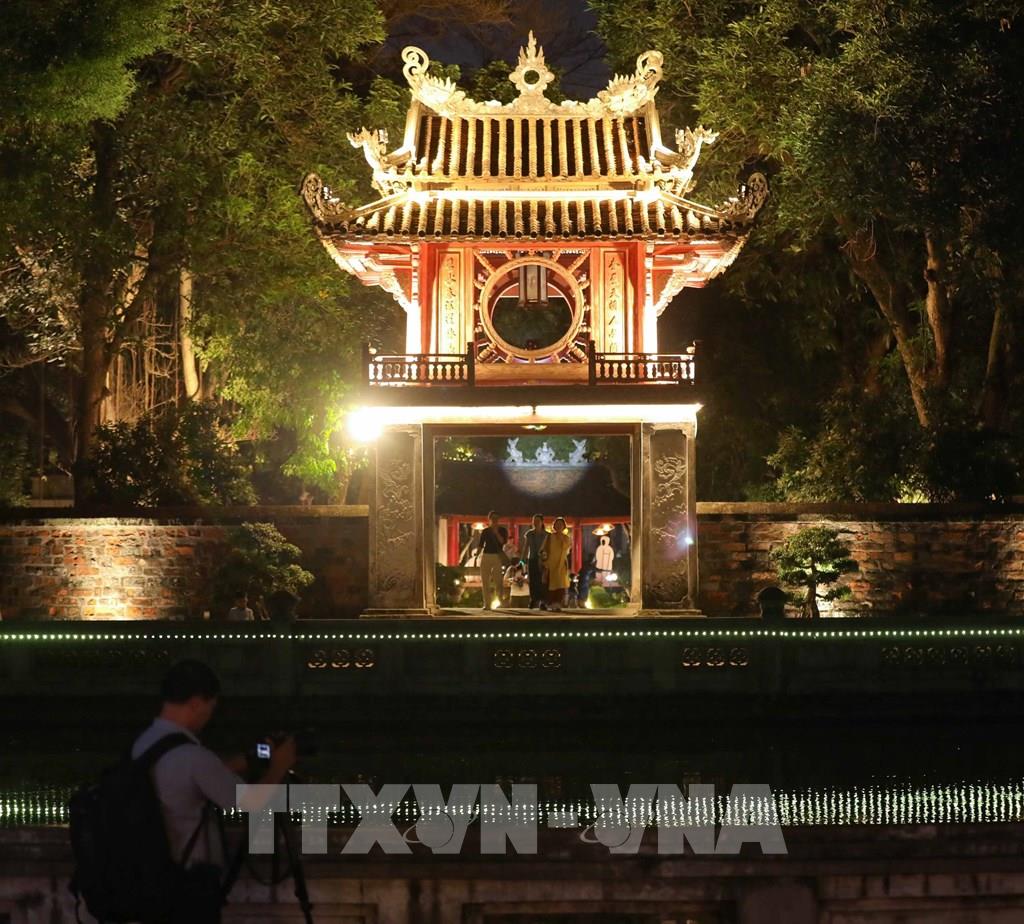 Tour đêm “Tinh hoa đạo học” đem đến cho du khách trải nghiệm mới, khác biệt, tạo điểm nhấn trong lòng du khách, biến nơi đây là điểm đến không thể bỏ qua của du khách khi đến với Thủ đô Hà Nội. Ảnh: Thanh Tùng - TTXVN