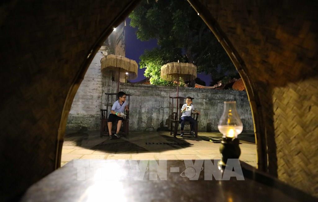 Tour đêm “Tinh hoa đạo học” tăng sự hấp dẫn cho du khách khi đến với Văn Miếu – Quốc Tử Giám. Ảnh: Thanh Tùng - TTXVN