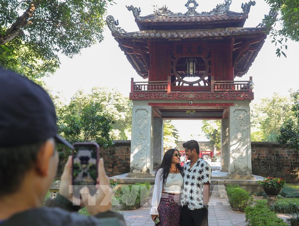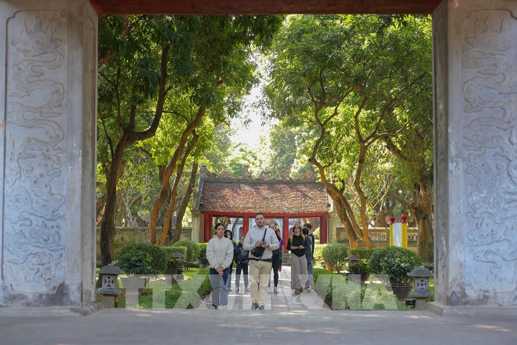 Di tích quốc gia đặc biệt Văn Miếu-Quốc Tử Giám là điểm đến không thể bỏ qua của các du khách trong và ngoài nước khi đến Hà Nội. Ảnh: Hoàng Hiếu - TTXVN