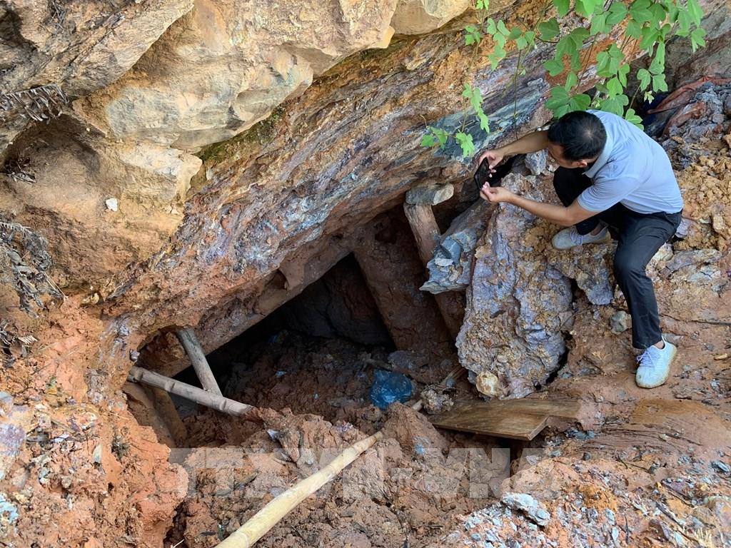 Phóng viên TTXVN xâm nhập một hầm vàng tại điểm Nậm Khá, xã Mù Cả, huyện Mường Tè, tỉnh Lai Châu. Ảnh: Nhóm PV TTXVN tại Lai Châu