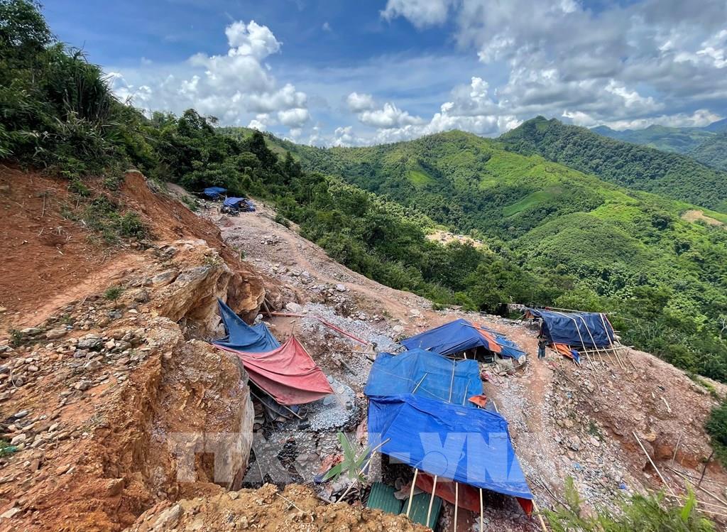 Hoạt động khai thác vàng trái phép tại điểm Nậm Khá, xã Mù Cả, huyện Mường tè, tỉnh Lai Châu như một đại công trường với hơn 200 người tham gia. Ảnh: Nhóm PV TTXVN tại Lai Châu