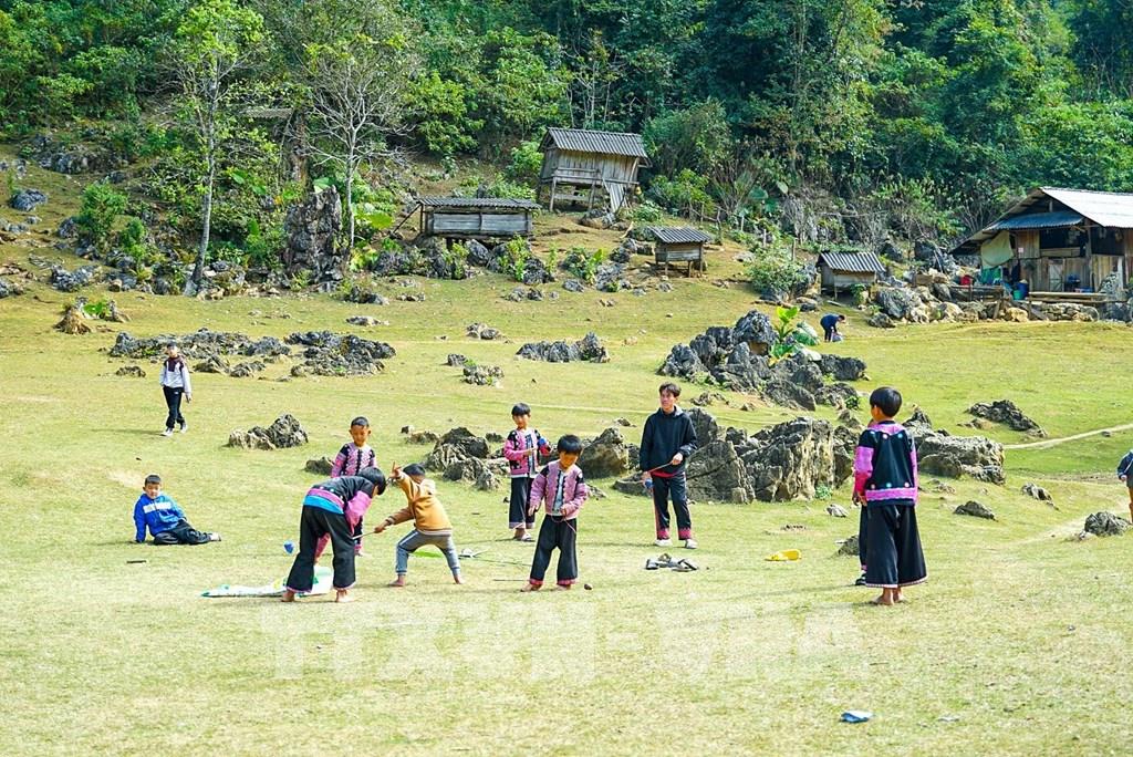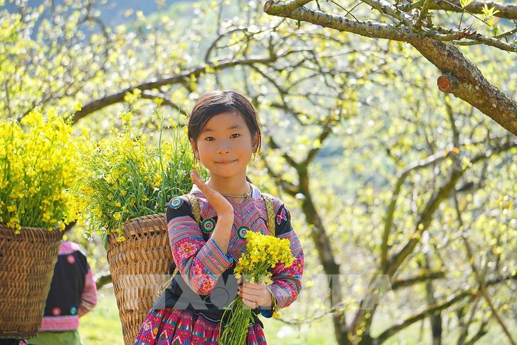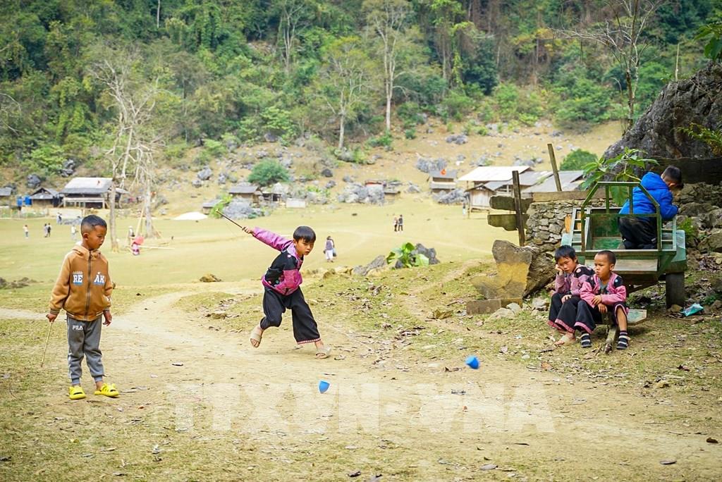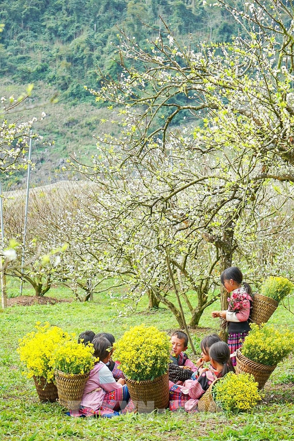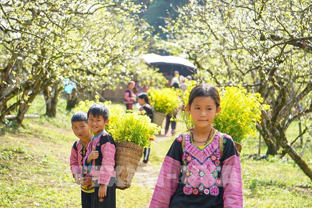 Sự hồn nhiên của các em nhỏ nơi đây tạo nên nét đặc trưng ấn tượng với du khách khi đến với thung lũng mận Nà Ka. Ảnh: Khánh Hòa – TTXVN