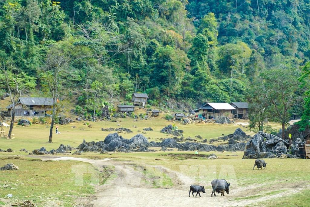 Vẻ đẹp nguyên sơ và nhịp sống yên bình khiến Hang Táu Mộc Châu (làng nguyên thủy) trở thành địa chỉ lý tưởng trong hành trình khám phá những vùng đất độc đáo ở cao nguyên. Ảnh: Khánh Hòa – TTXVN