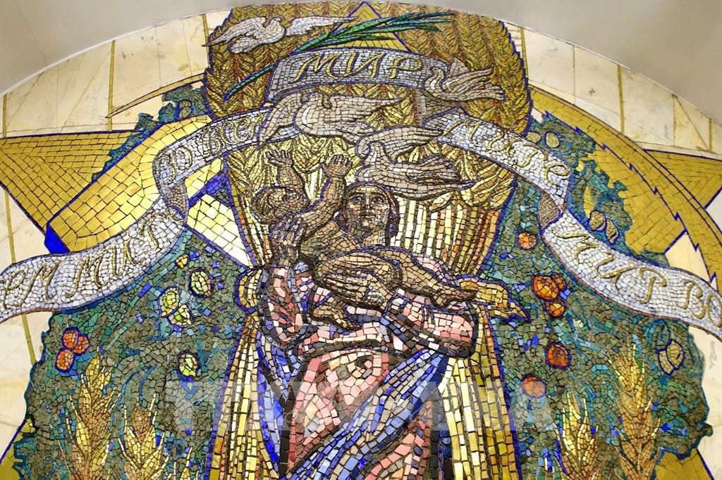 Bức tranh khảm với chủ đề Hòa bình cho toàn thế giới tại nhà ga Novoslobodskaya. Ảnh: Trần Hiếu - Pv TTXVN