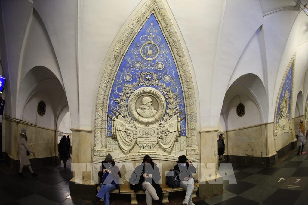 Ga tàu điện ngầm Taganskaya nổi bật với các họa tiết trang trí về chủ đề lịch sử quân sự và người lính. Ảnh: Trần Hiếu - Pv TTXVN
