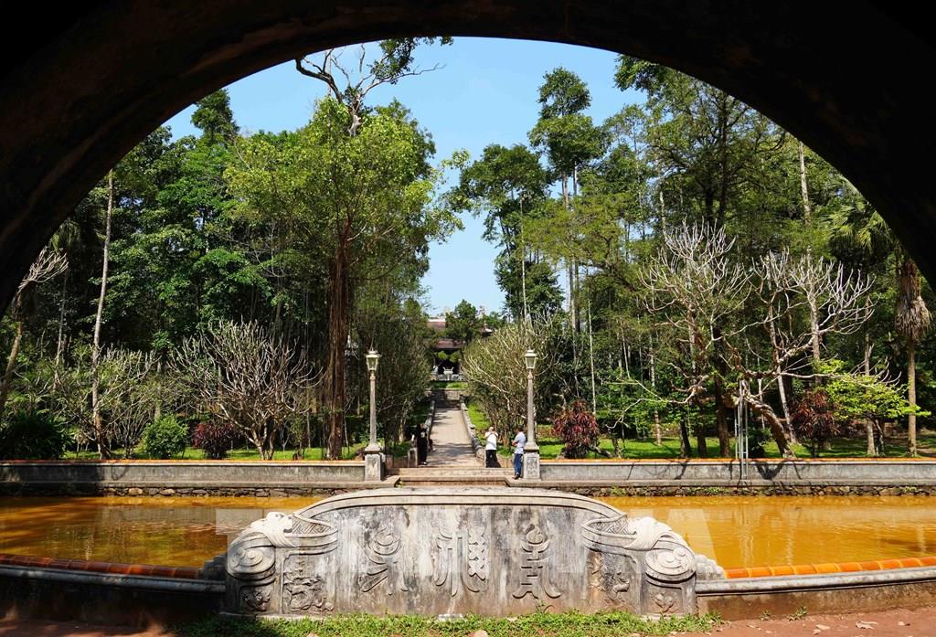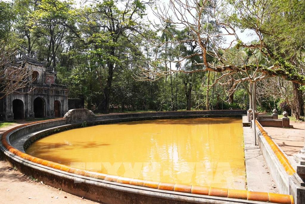 Hồ bán nguyệt ngay sau cổng chính của chùa Từ Hiếu, phường Thủy Xuân, thành phố Huế. Ảnh: Nguyên Lý - TTXVN
