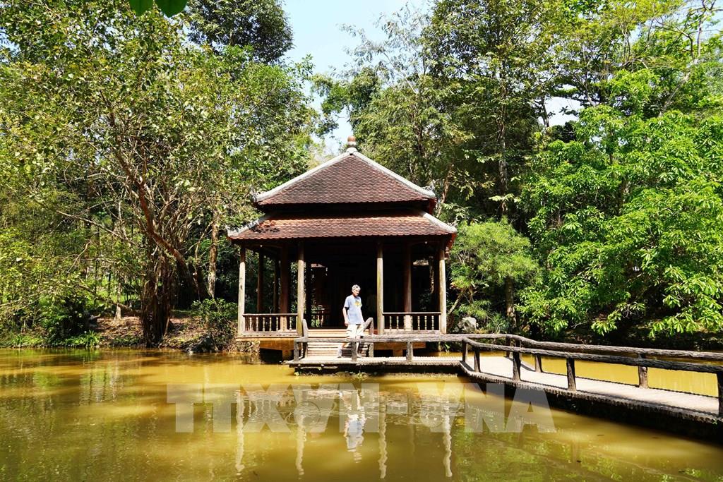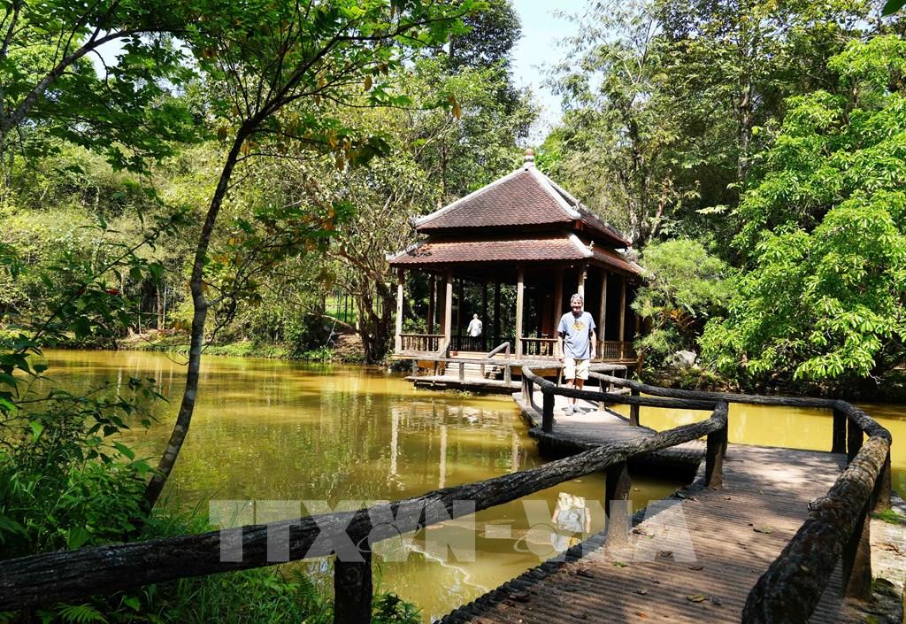 Nơi nghỉ chân và cầu đi bộ trên hồ nuôi cá của chùa Từ Hiếu, phường Thủy Xuân, thành phố Huế. Ảnh: Nguyên Lý - TTXVN
