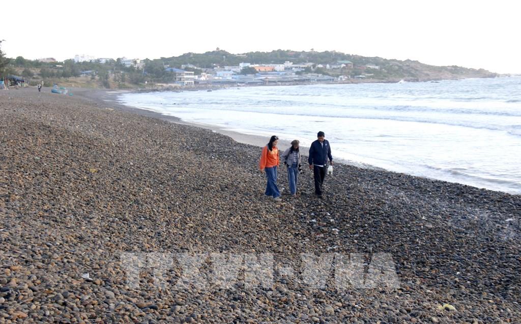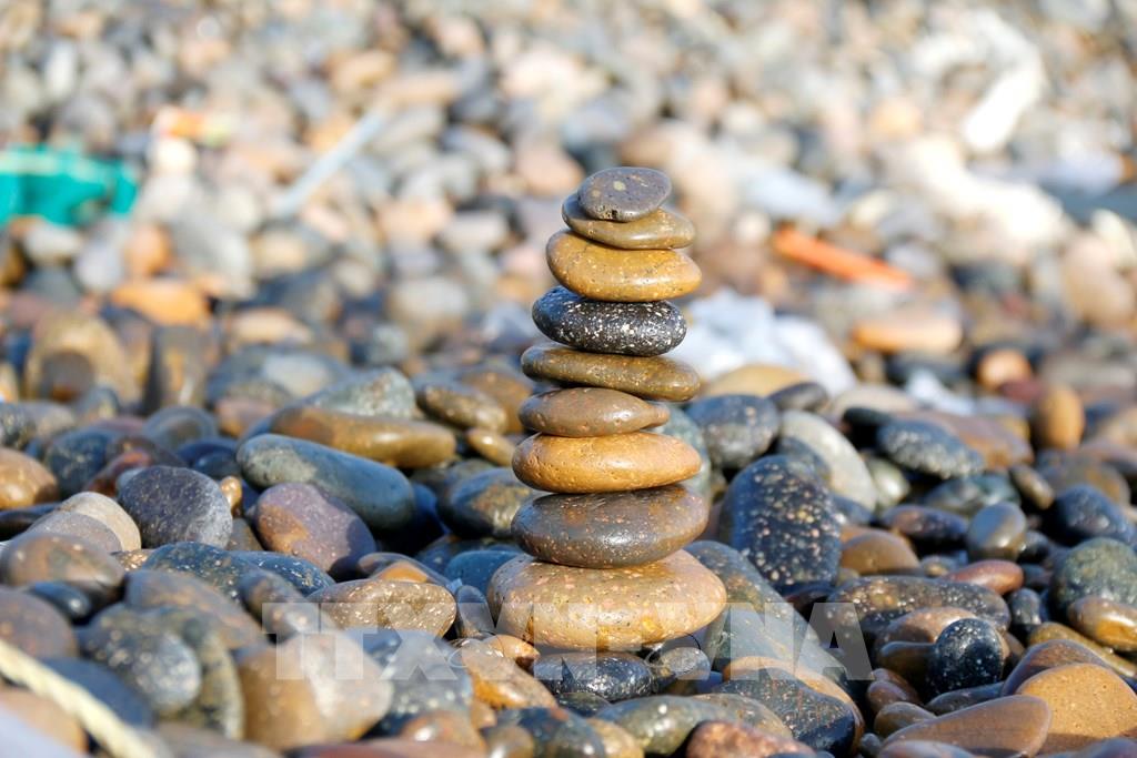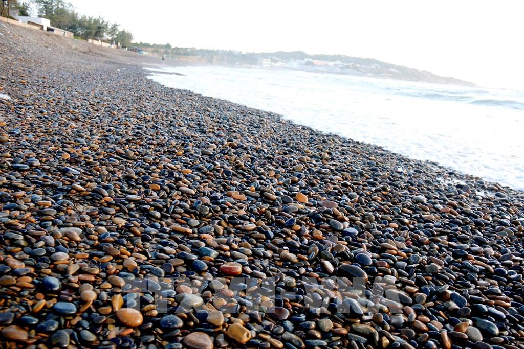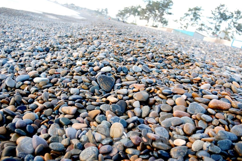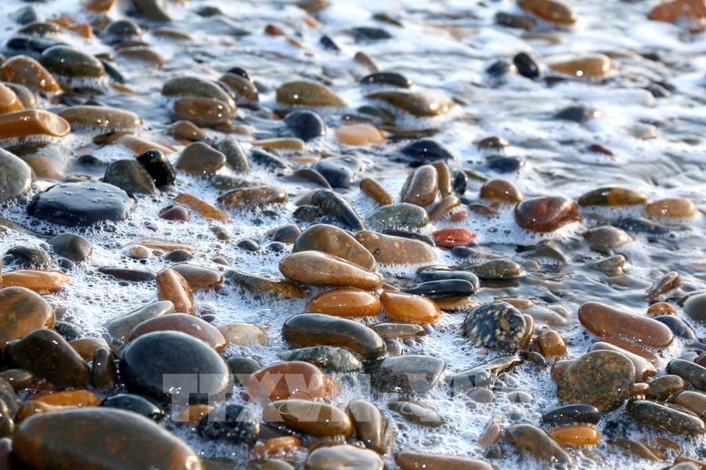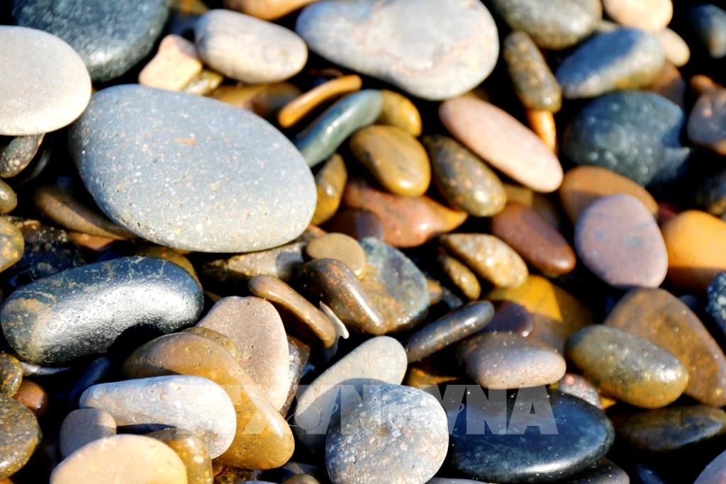Thủy triều cùng những con sóng đã mài nhẵn các viên đá cuội, tạo bãi đá độc đáo với vô số hình hài, hoa văn lạ lẫm. Ảnh: Nguyễn Thanh - TTXVN