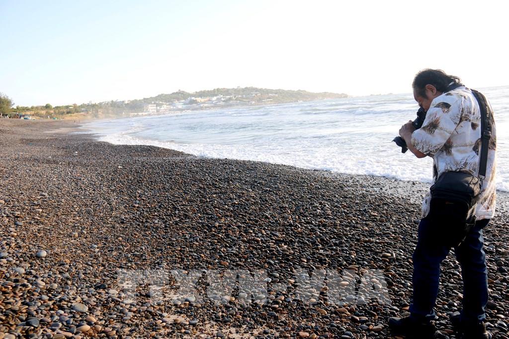 Nhiếp ảnh gia thỏa sức đam mê sáng tạo ở bãi đá 7 màu tại Bình Thuận. Ảnh: Nguyễn Thanh - TTXVN