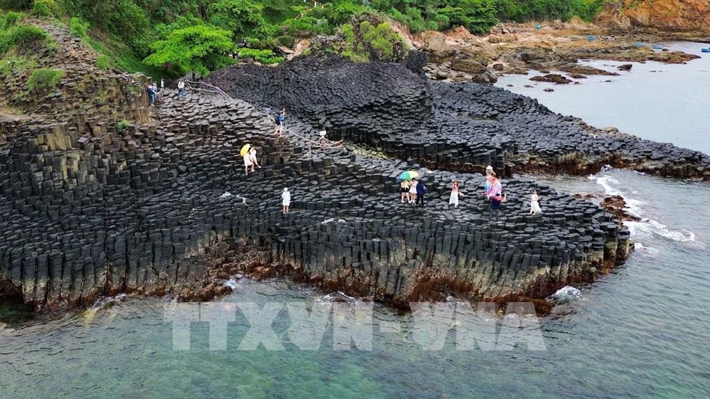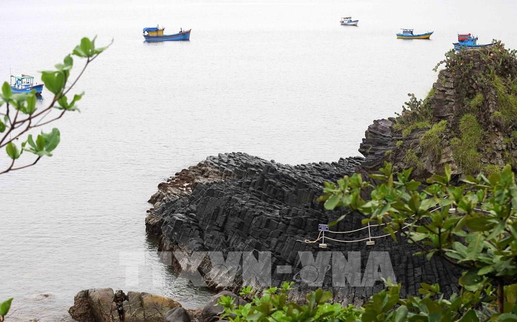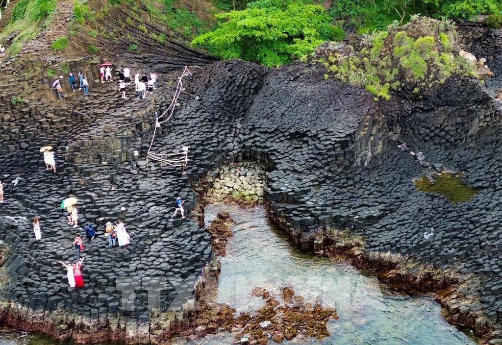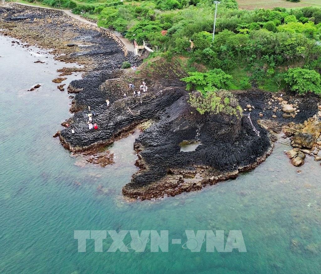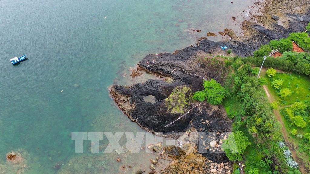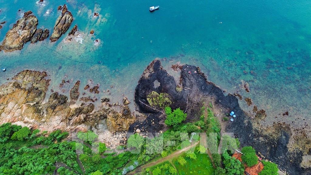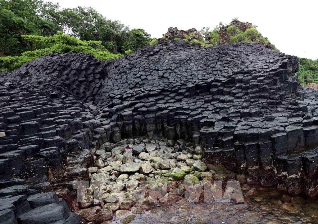 Đây là minh chứng cho cuộc gặp gỡ triệu năm giữa dòng dung nham núi lửa nóng chảy và nước biển lạnh, tạo nên hiện tượng địa chất hiếm có. Ảnh: Nhật Anh - TTXVN