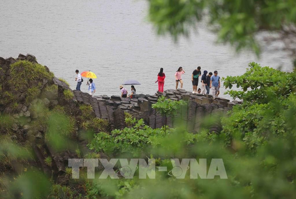 Hàng chục ngàn cột đá bazan hình lục giác, ngũ giác xếp chồng khít lên nhau như một tổ ong khổng lồ, một kỳ quan thị giác độc đáo. Ảnh: Nhật Anh - TTXVN