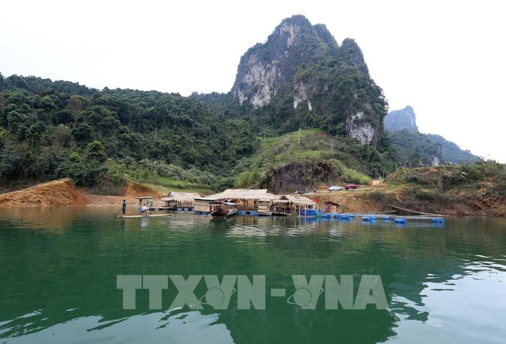 Khu vực Vịnh có nhà nổi do người dân làm bằng những nguyên vật liệu gần gũi với thiên nhiên tạo ra khung cảnh hiền hòa phục vụ du khách tham quan Vịnh. Ảnh: Quý Trung – TTXVN