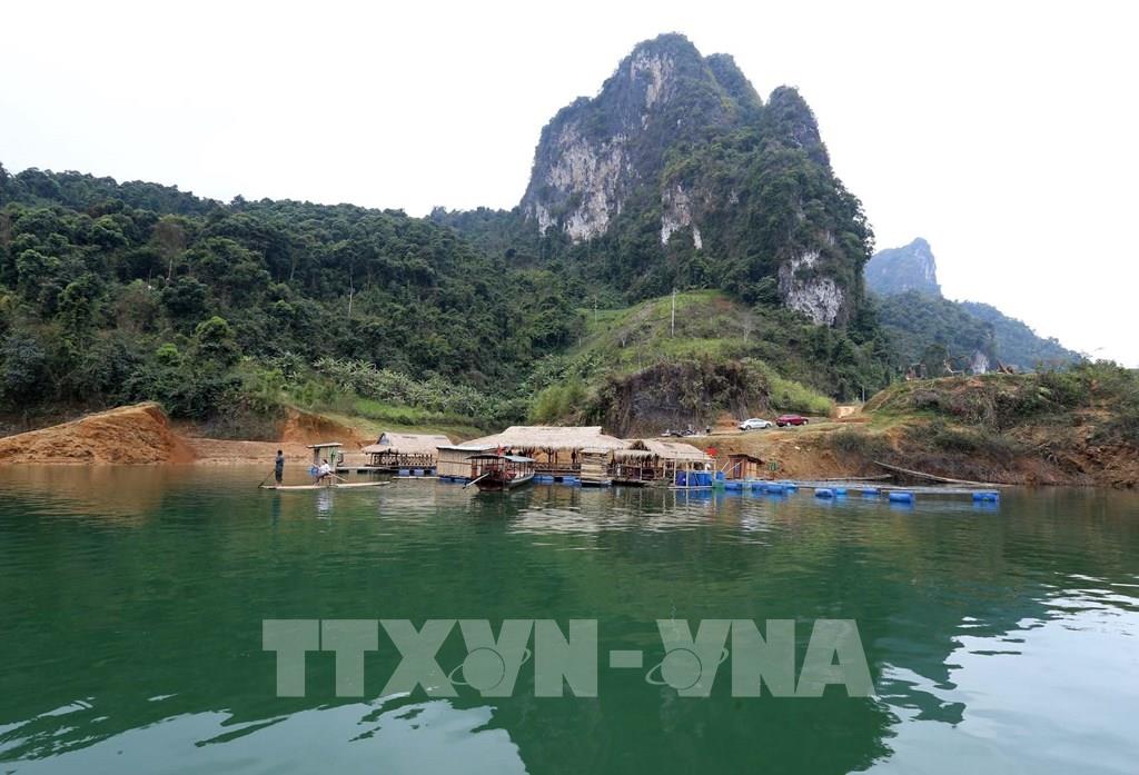 Trên đường vào thăm quan Vịnh du khách được mục sở thị những nếp nhà sàn của đồng bào dân tộc Thái, đặc trưng của người dân Tây Bắc. Ảnh: Quý Trung – TTXVN