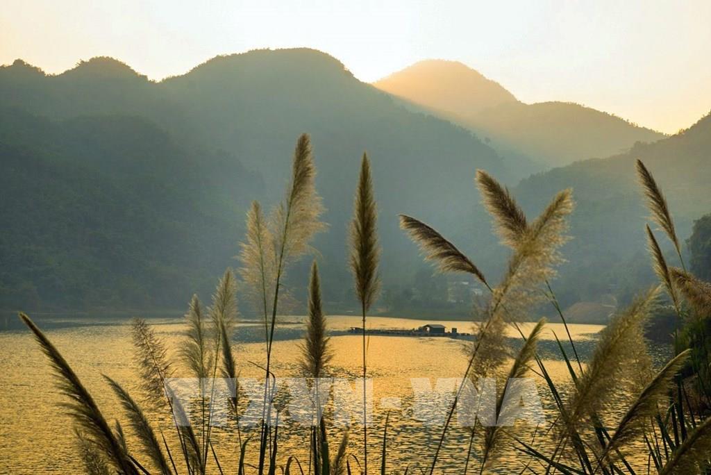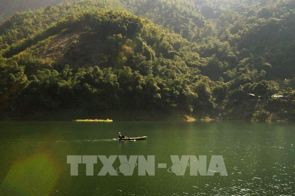 Những buổi chiều hoàng hôn lấp vào những rặng núi xa và buông xuống mặt hồ, ráng chiều vàng làm khung cảnh trở nên thanh bình và đẹp. Ảnh: Trọng Đạt-TTXVN
