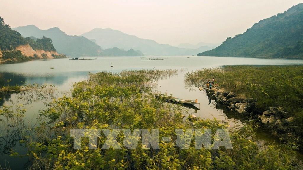 Những buổi sáng mây phủ trên những dãy núi, mặt hồ phẳng lặng như gương và con người nơi đây đang sống giữa cảnh quan thiên nhiên đầy trong lành và tươi đẹp. Ảnh: Trọng Đạt-TTXVN