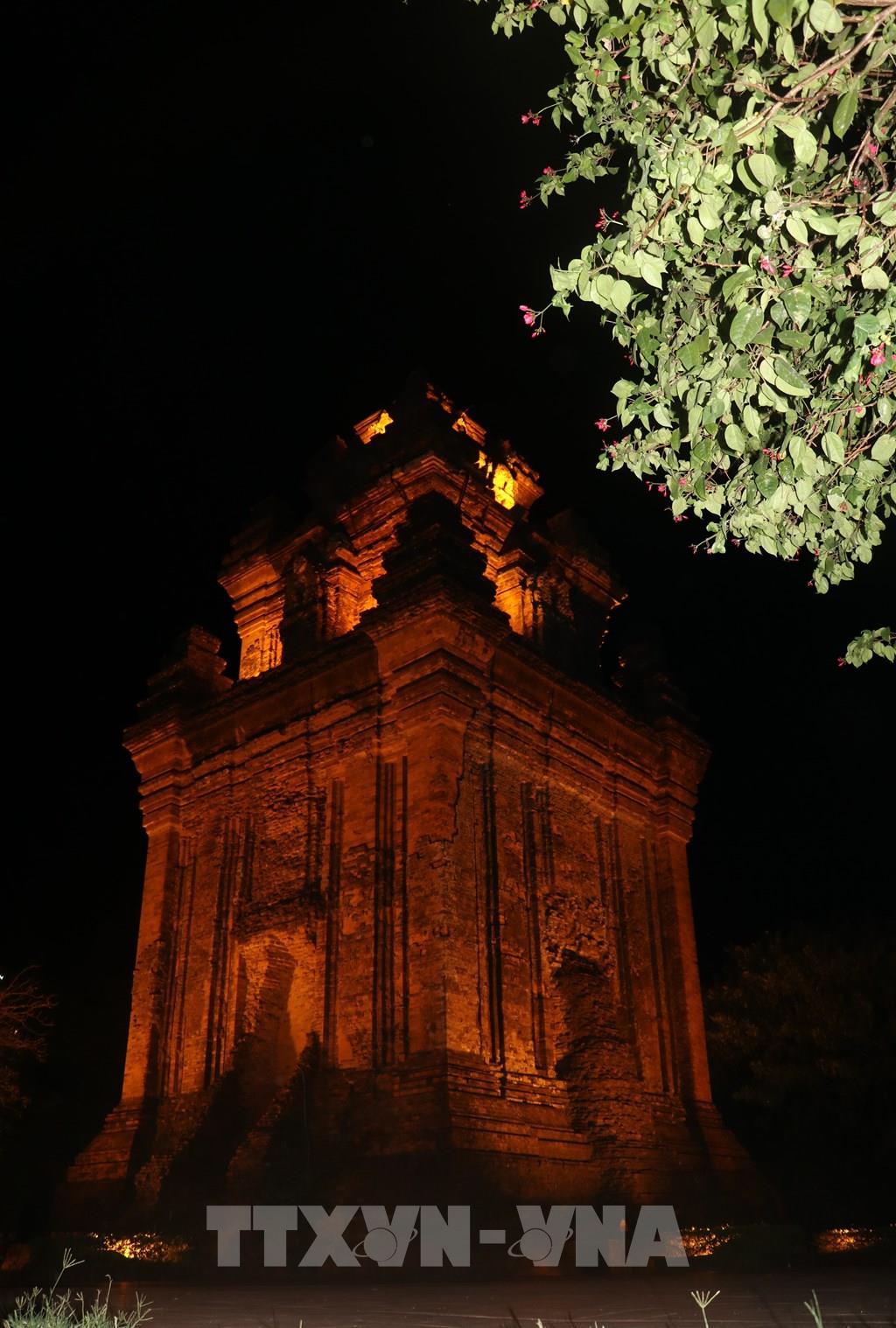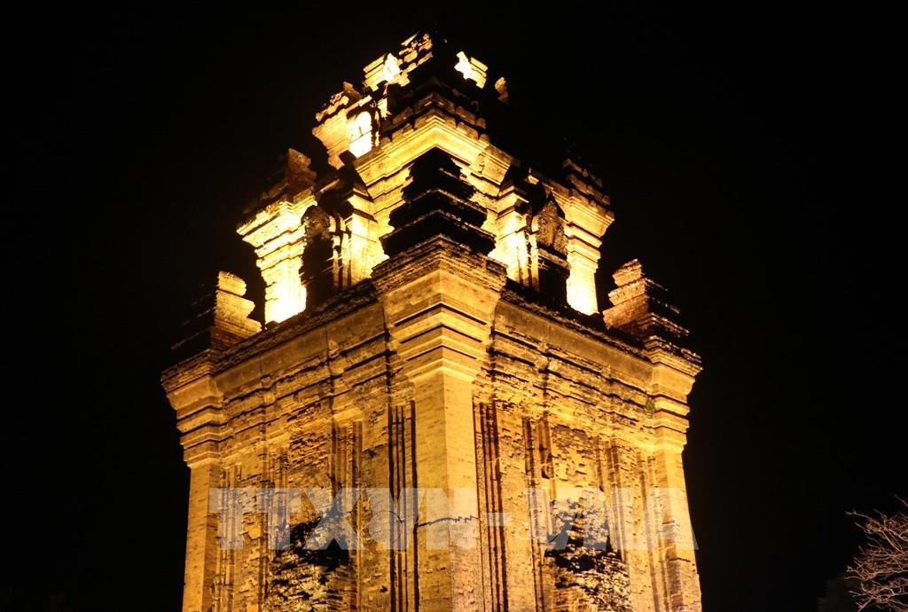 Đứng ở chân tháp Nhạn có thể ngắm nhìn toàn bộ khung cảnh thành phố Tuy Hòa và biển, đặc biệt vào ban đêm, ánh đèn từ chân tháp khiến cho tháp Nhạn càng trở nên lung linh, huyền ảo hơn. Ảnh: Phạm Cường-TTXVN