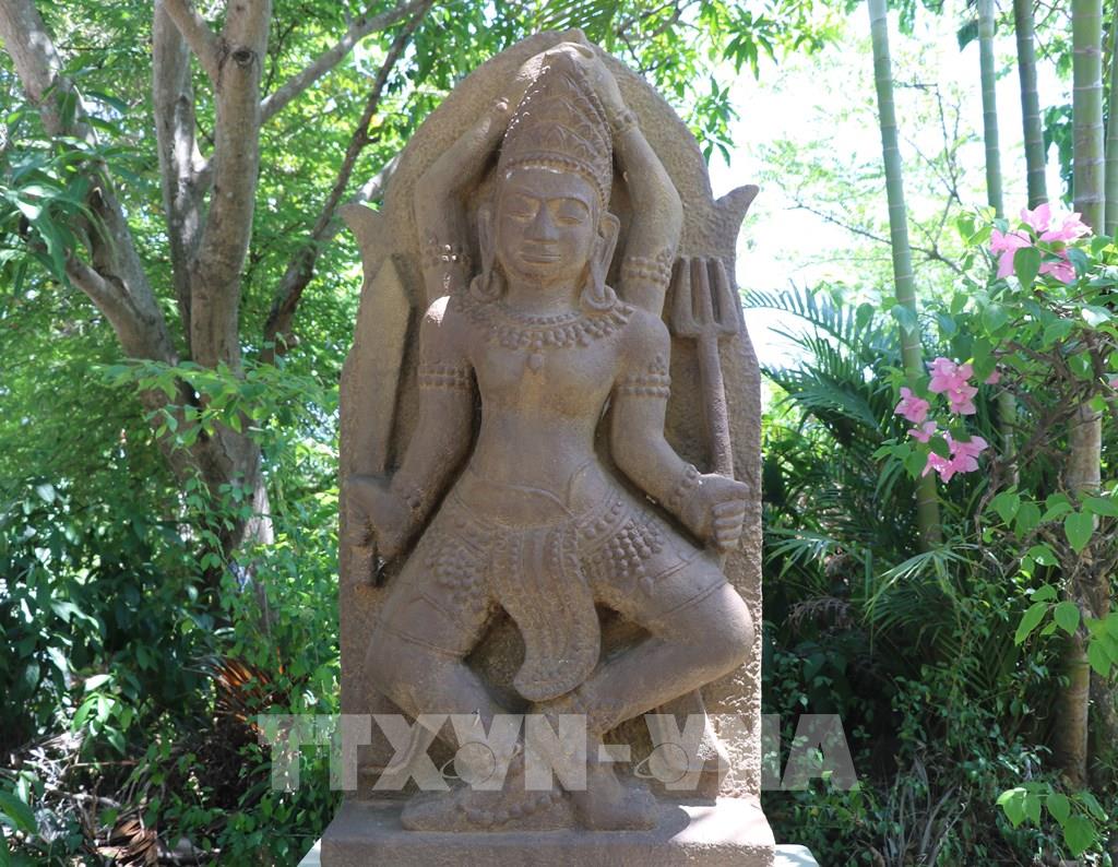 Tượng Shiva múa (phục chế) tại khuôn viên tháp. Ảnh: Phạm Cường-TTXVN