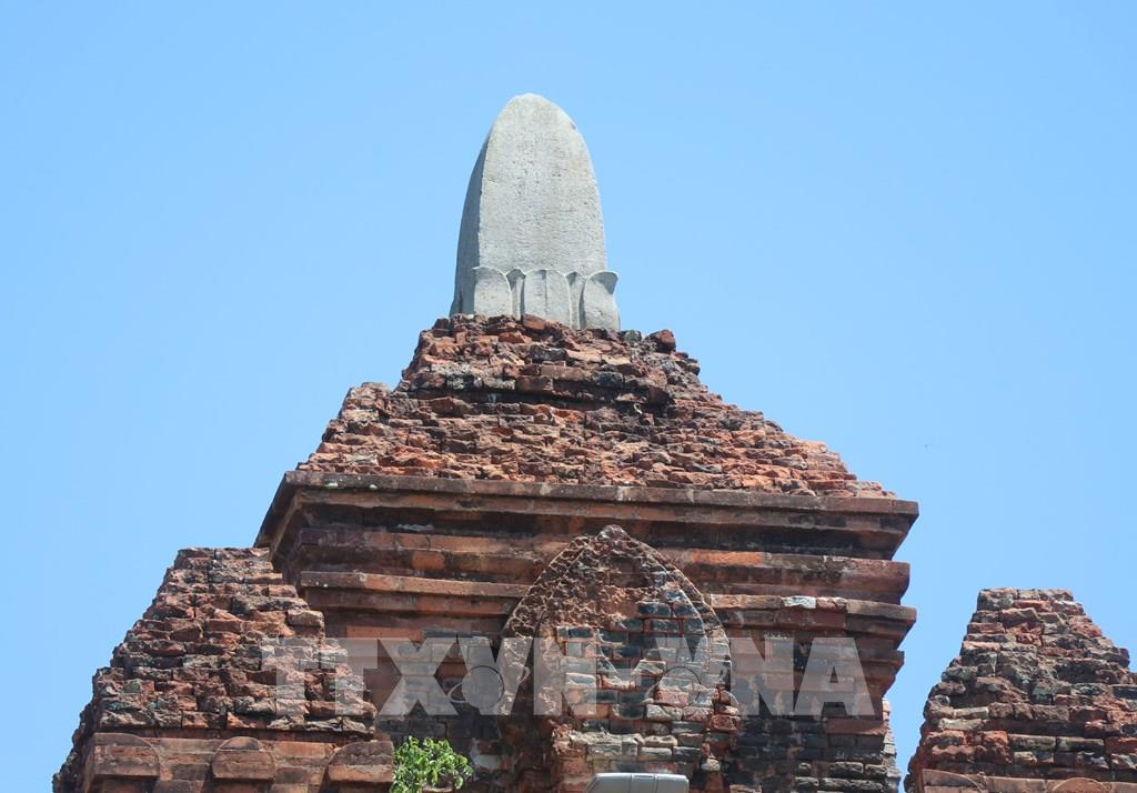 Trên đỉnh tháp là hình tượng Linga bằng đá được điêu khắc công phu, cửa và mặt chính của tháp quay về hướng Đông. Ảnh: Phạm Cường-TTXVN