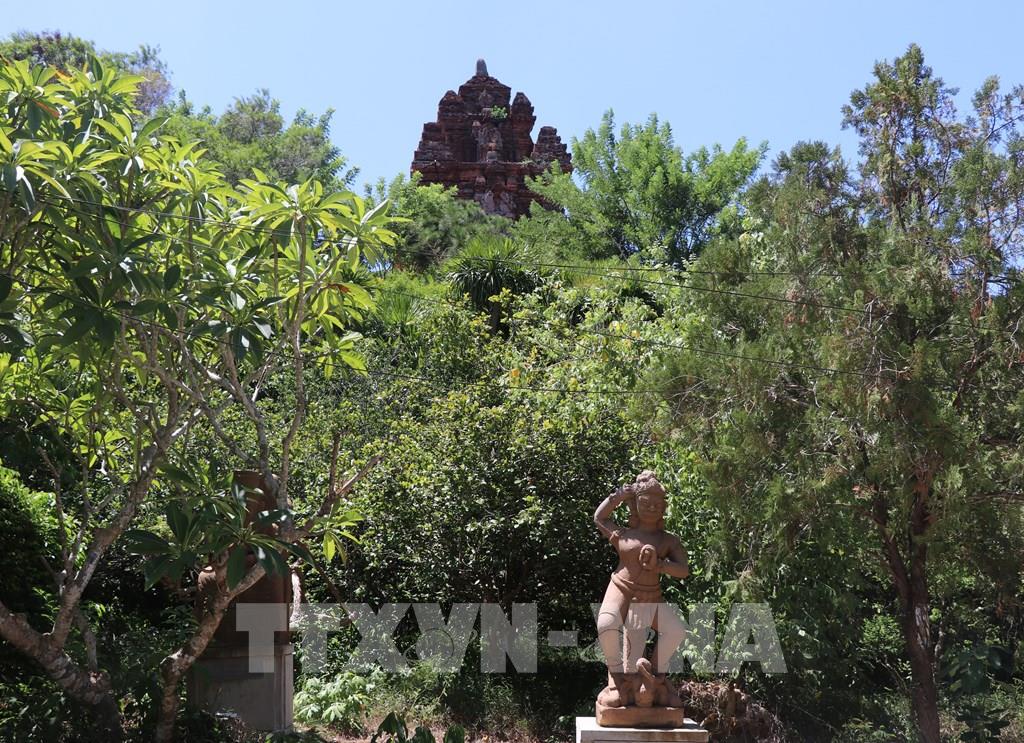 Các bức tượng bằng đá được trưng bày trong khuôn viên tháp. Ảnh: Phạm Cường-TTXVN