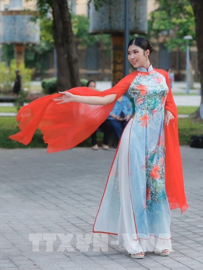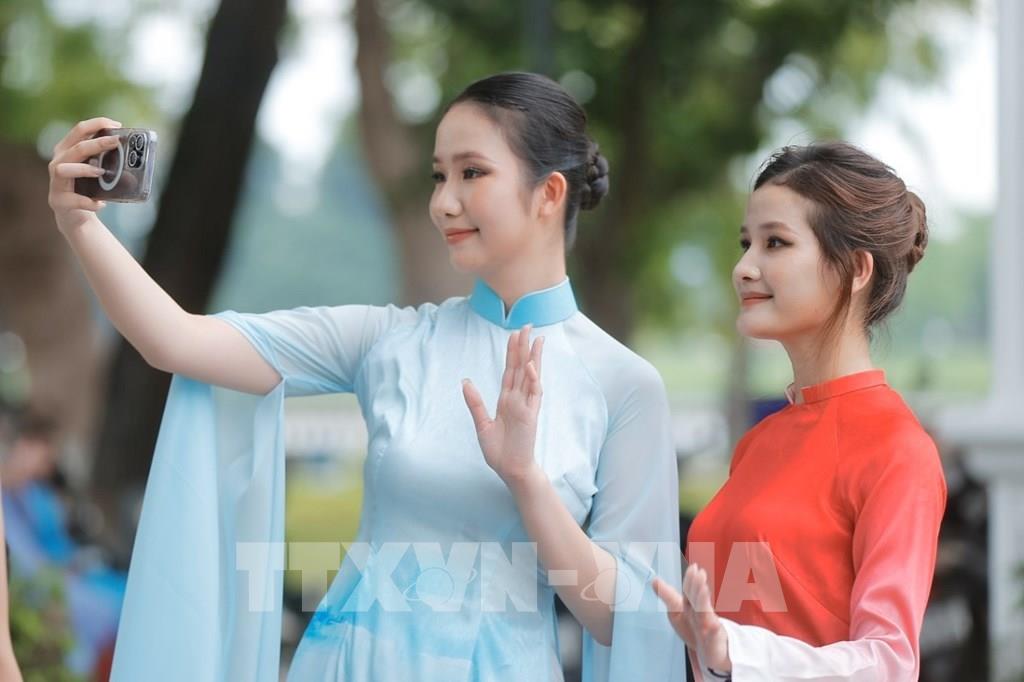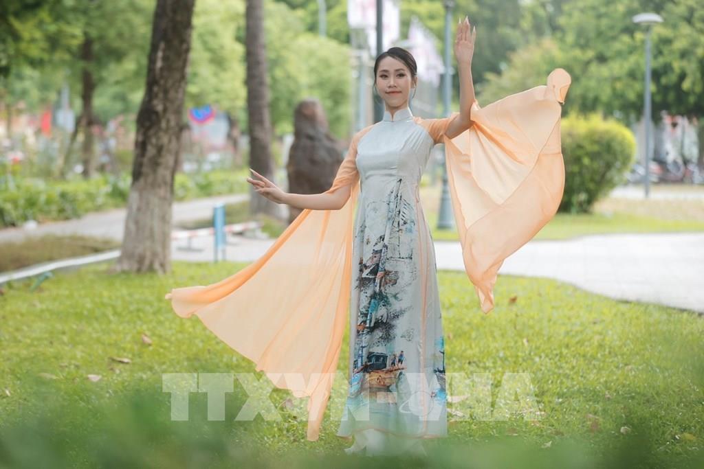 Thiếu nữ duyên dáng bên tà áo dài Việt Nam. Ảnh: Minh Quyết - TTXVN