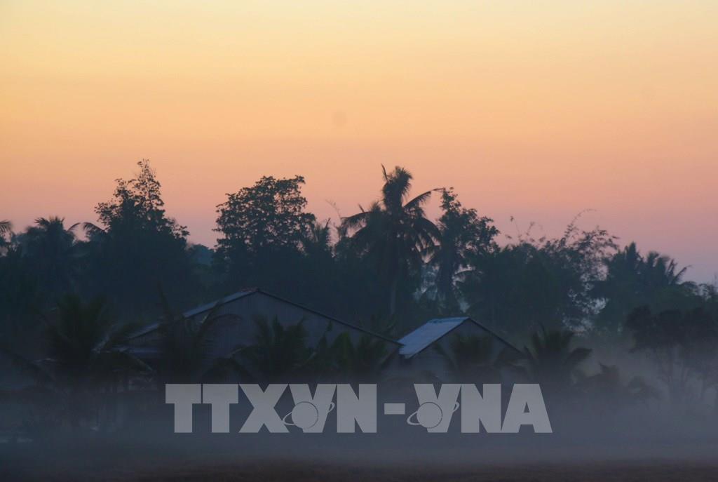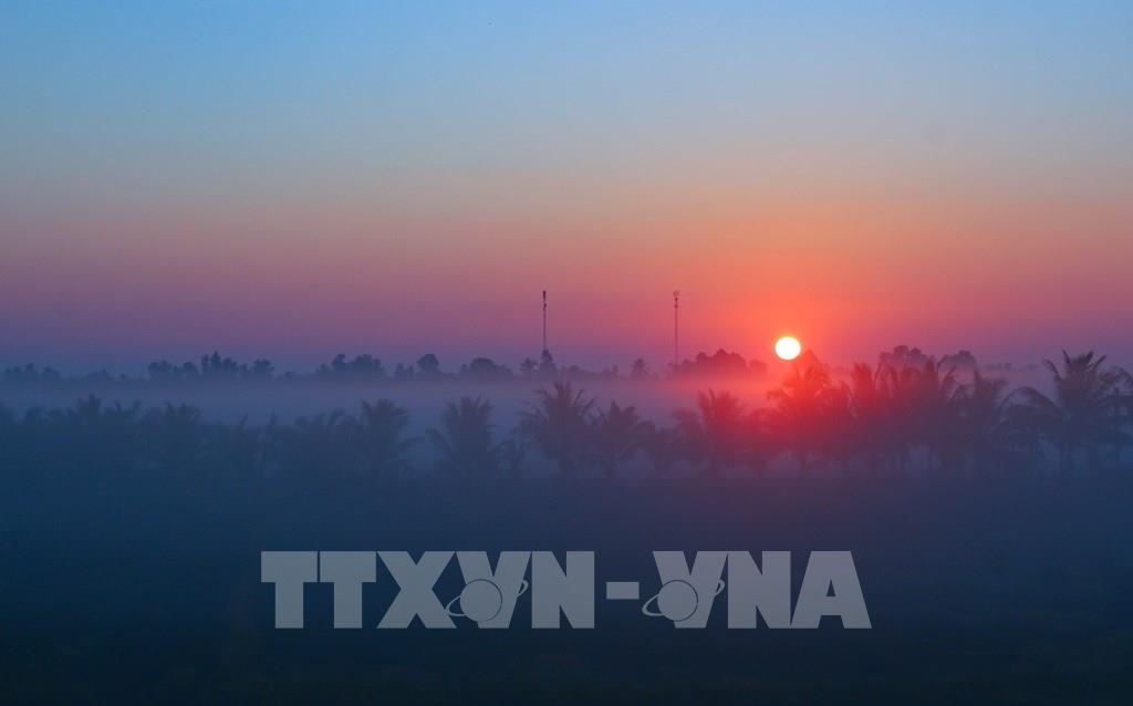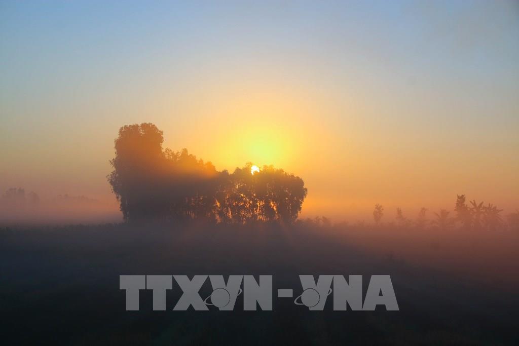 Miền quê Cần Thơ những ngày này khoác lên mình vẻ đẹp thơ mộng hiếm có, khi sương mù dày đặc hòa quyện cùng ánh bình minh ửng hồng. Từ sáng sớm, những cánh đồng trải dài chìm trong làn sương mỏng, tạo nên khung cảnh vừa huyền ảo vừa yên bình. Ánh nắng đầu ngày len lỏi qua hàng cây, chiếu xuống mặt đất lớp ánh sáng vàng dịu, làm nổi bật vẻ đẹp mộc mạc của vùng quê sông nước.