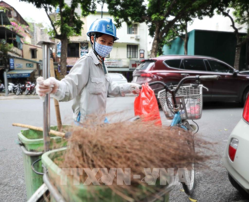 Hình ảnh người lao công thân thuộc vẫn xuất hiện không kể ngày, đêm đang góp phần làm cho Hà Nội sạch, đẹp hơn. Ảnh: Thanh Tùng - TTXVN