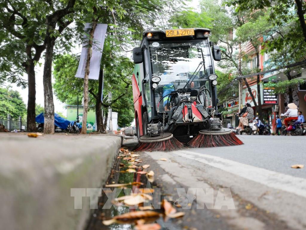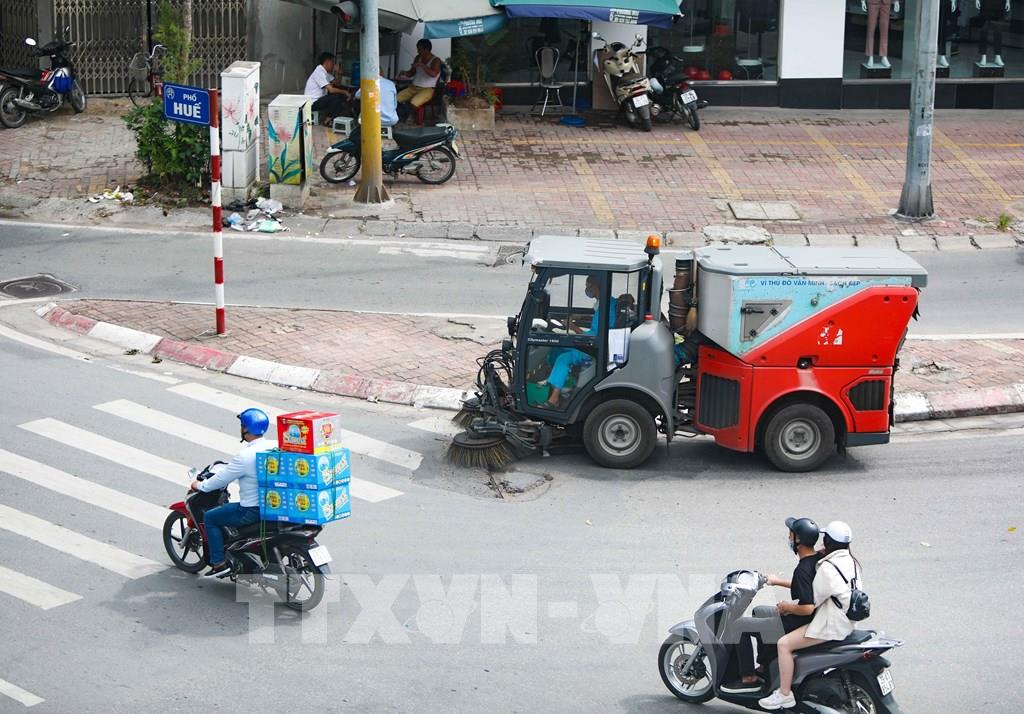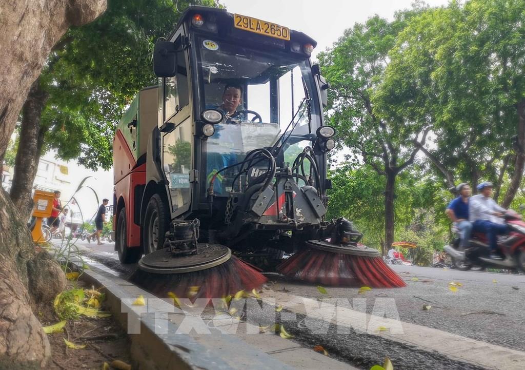 Xe hút bụi, quét rác mini góp phần cơ giới hoá việc vệ sinh môi trường đường phố. Ảnh: Thanh Tùng - TTXVN