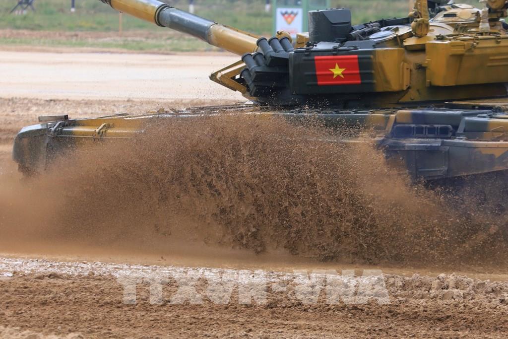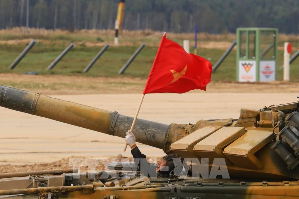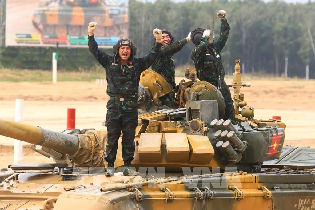 Với thành tích vô địch ở bảng 2, tại kỳ Army Games 2021, Đội tuyển xe tăng Việt Nam được quyền thi đấu tại bảng 1 cuộc thi Tank Biathlon cùng với các đội mạnh nhất hiện nay. Ảnh: Trần Hiếu - Pv TTXVN tại Nga