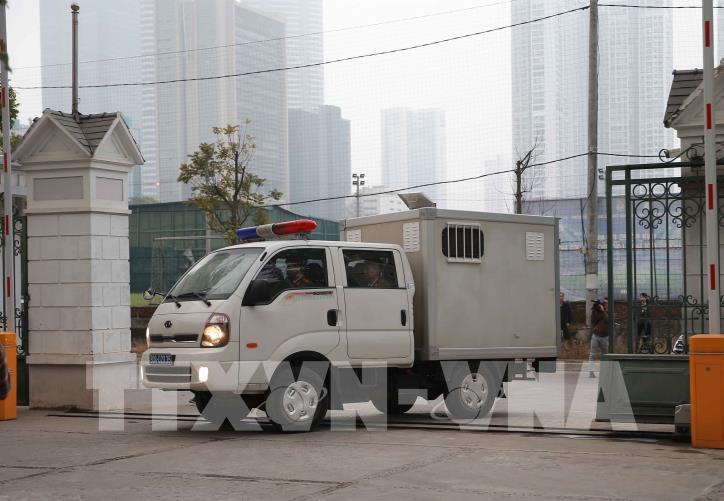 Cảnh sát dẫn giải các bị cáo đến tòa. Ảnh: Văn Điệp - TTXVN