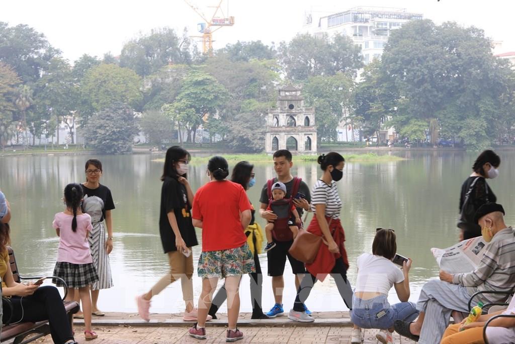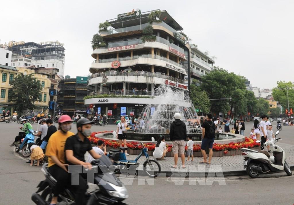 Khu vực hồ Hoàn Kiếm lượng khách du lịch và người dân tăng cao dịp nghỉ lễ 30-4 và 1-5. Ảnh: Thành Đạt - TTXVN