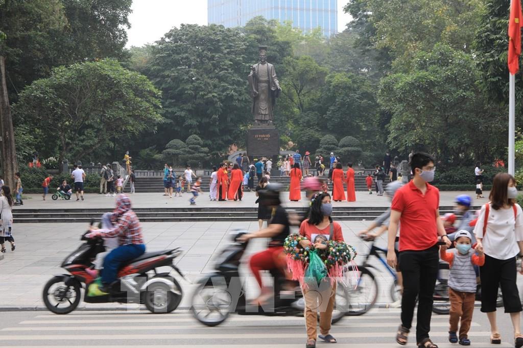 Trên các tuyến phố mật độ người dân ra đường dịp nghỉ lễ 30-4 và 1-5 tăng hơn so với mấy ngày gần đây. Ảnh: Thành Đạt - TTXVN
