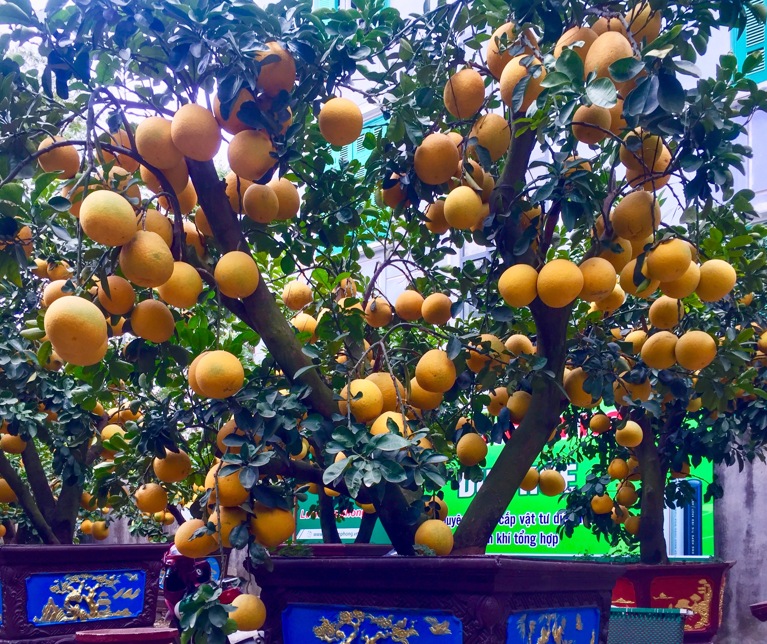 Hơn 100 cây Bưởi Diễn cảnh được bày bán trên đường Lạc Long Quân. Ảnh: Đức Hạnh/BNEWS/TTXVN