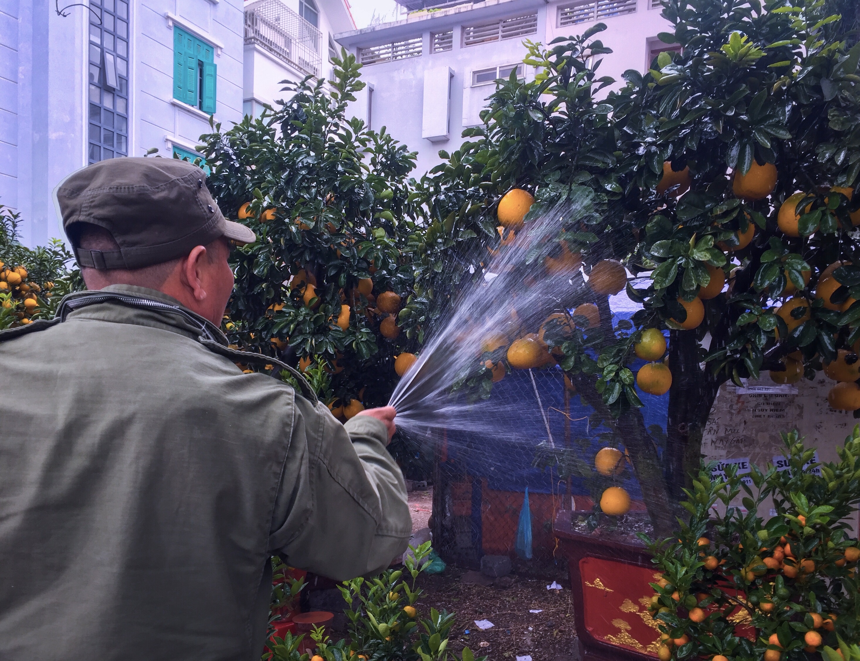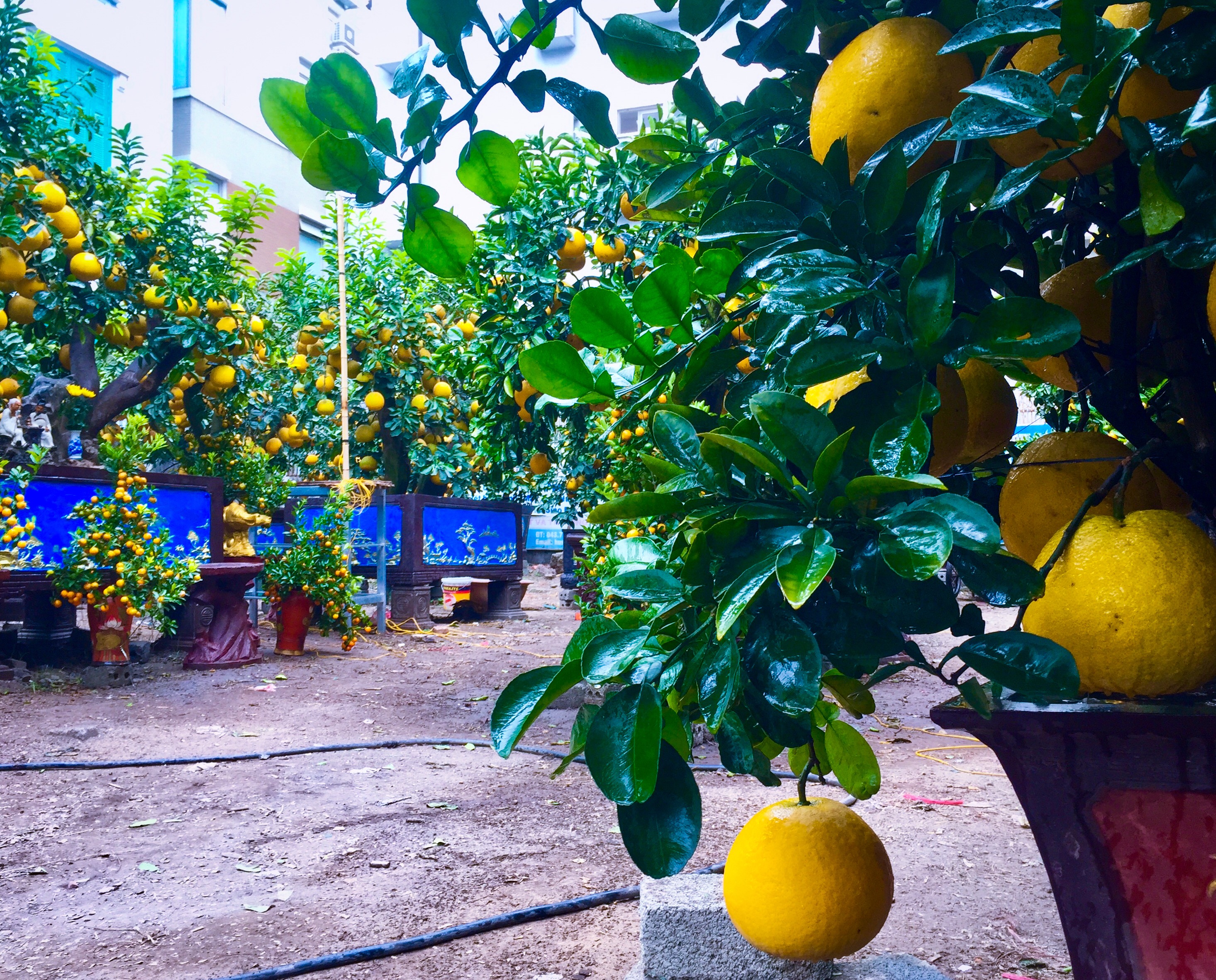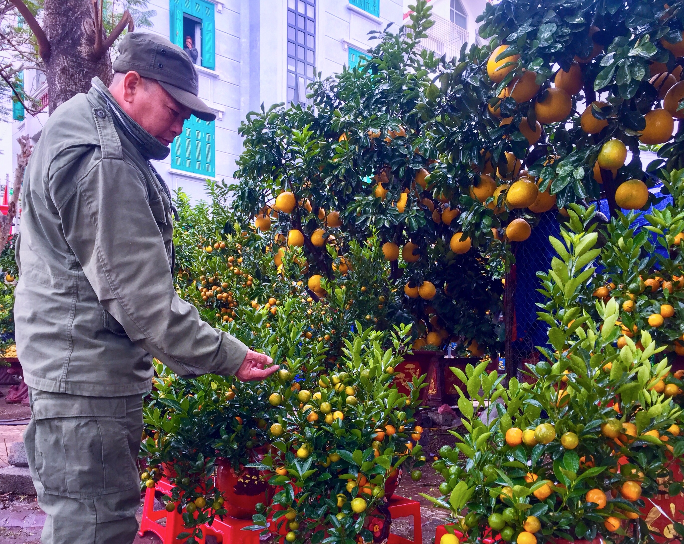 Dự kiến năm nay, bưởi cảnh sẽ tăng giá nhẹ. Ngoài bưởi cảnh ra anh Thắng còn bổ xung thêm quất để người mua có thêm sự lựa chọn. Ảnh: Đức Hạnh/BNEWS/TTXVN