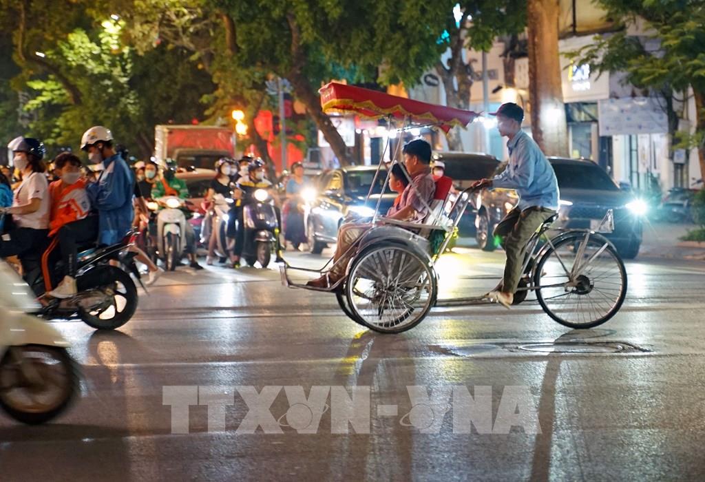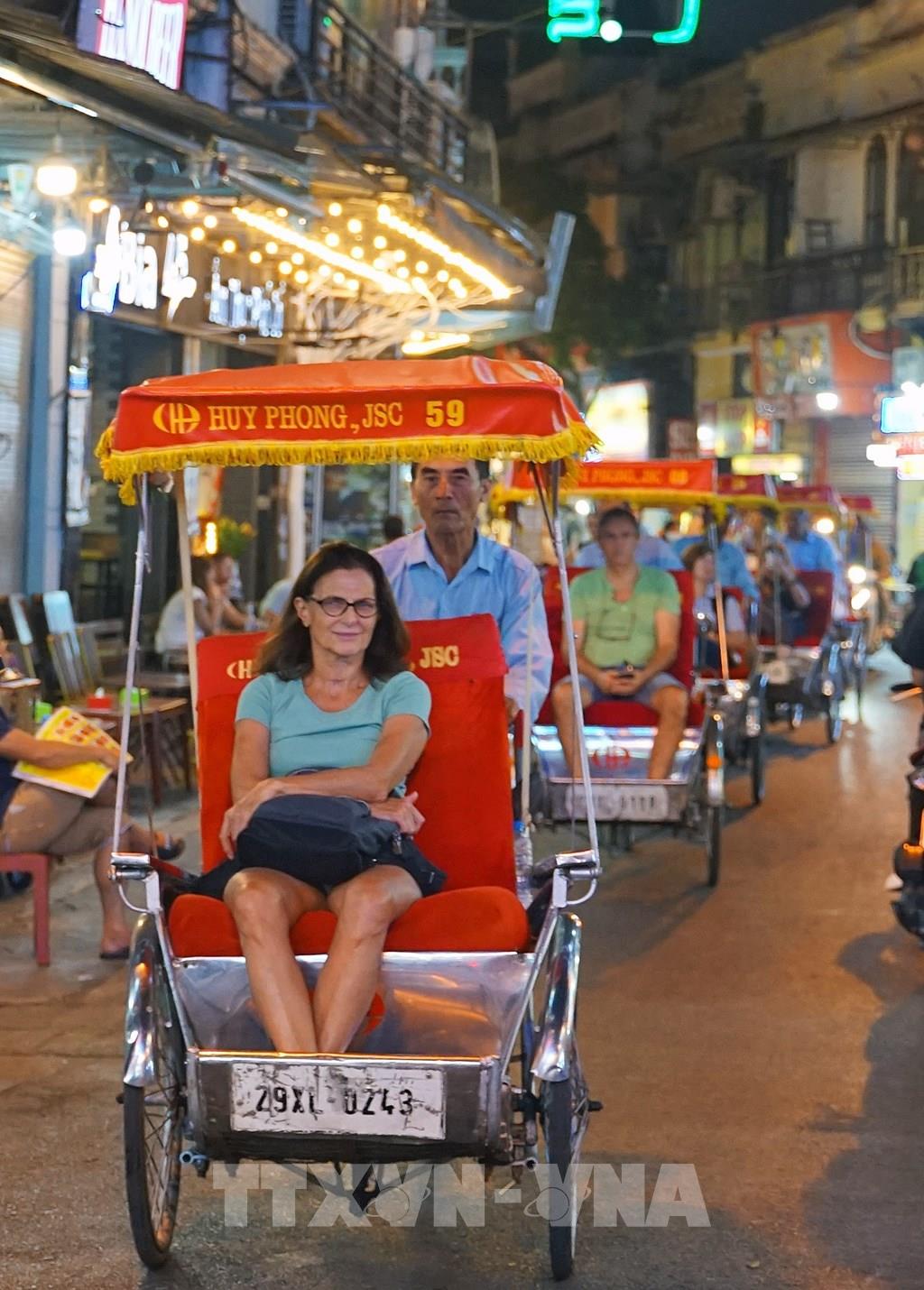 Ngồi trên xích lô, hít thở khí trời trong lành, chậm rãi di chuyển qua từng con phố, ngõ hẻm để ngắm trọn những nét văn hóa, hoạt động đời sống thường ngày của người dân Thủ đô đã mang lại những ấn tượng khó phai đối với nhiều du khách quốc tế. Ảnh: Khánh Hòa – TTXVN