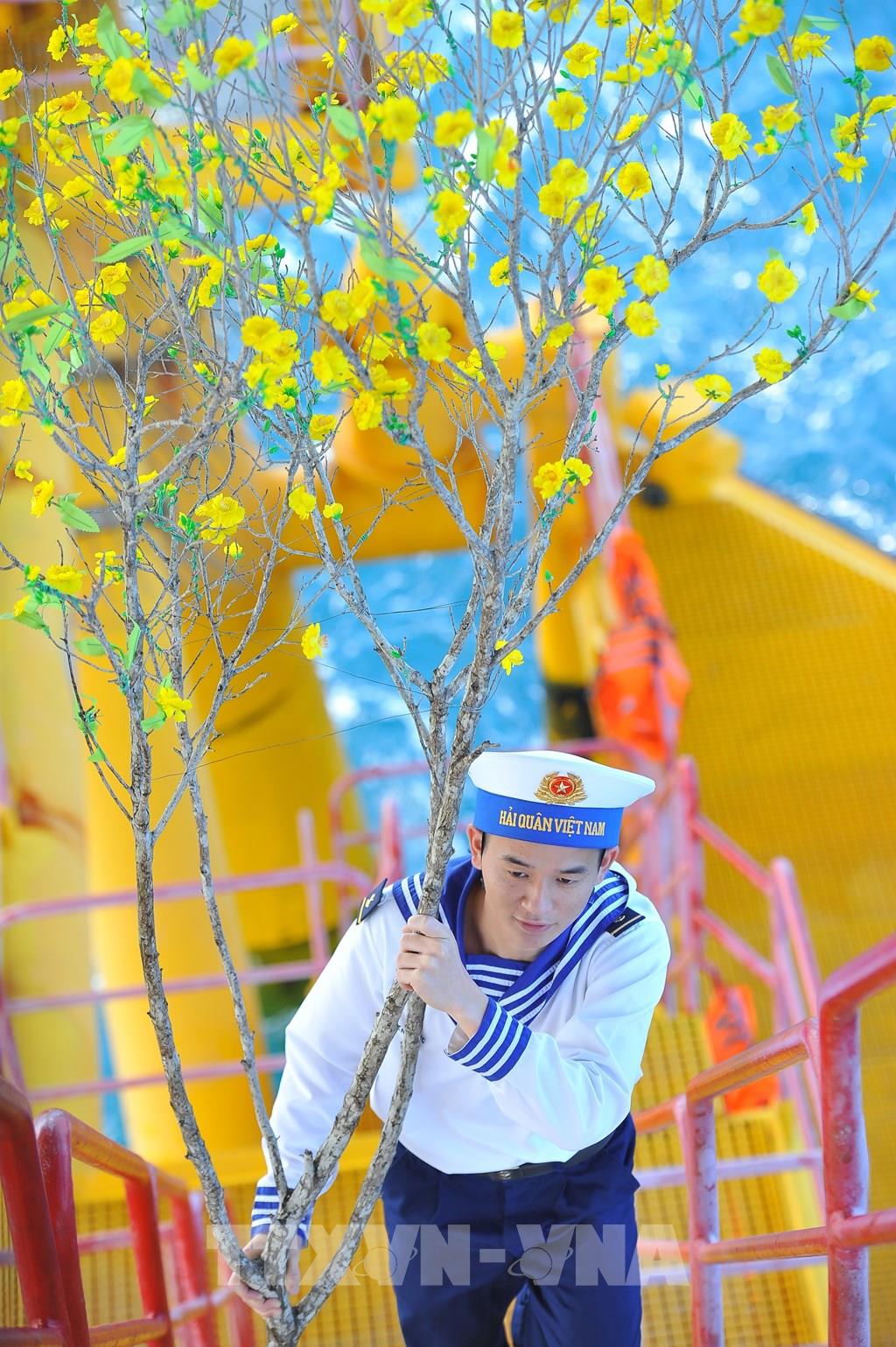 Sắc xuân từ đất liền ra nhà giàn với những loài hoa đặc trưng khi Tết đến Xuân về. Ảnh: Minh Đức - TTXVN